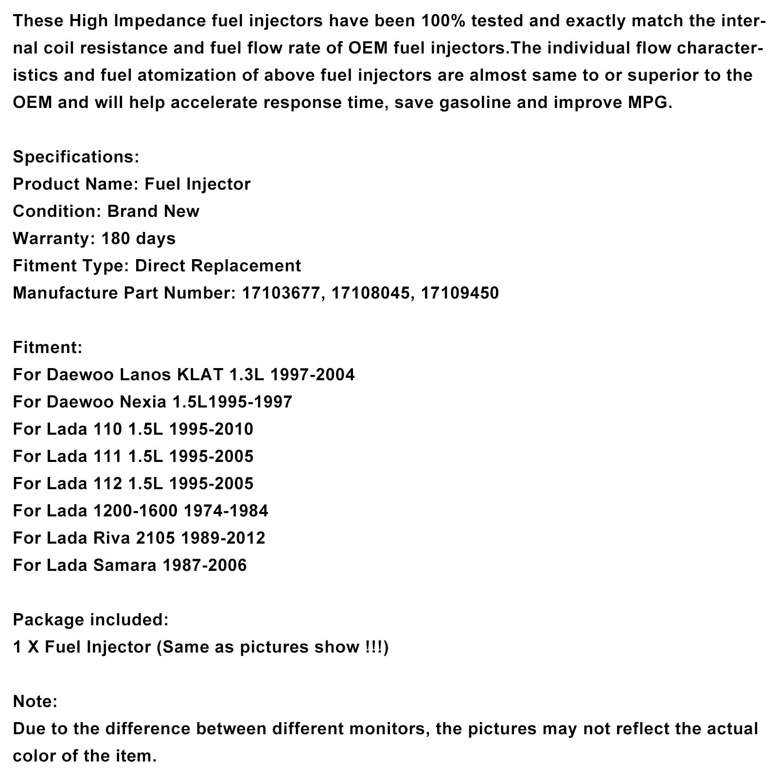 1PCS Fuel Injector 17109450 Fit Daewoo Lanos 1997-2004 Fit Nexia 1995-1997