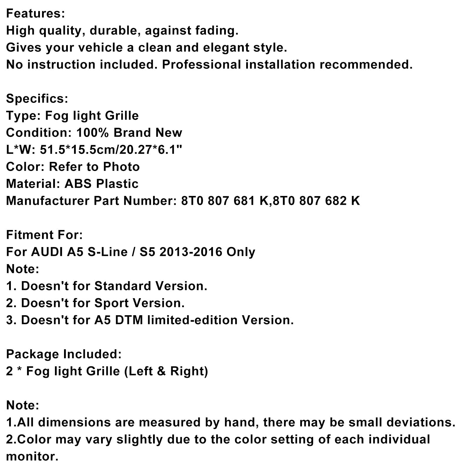 2PCS Front Fog Lamp Black Grill Grille Fit AUDI A5 S-Line S5 2013-2016