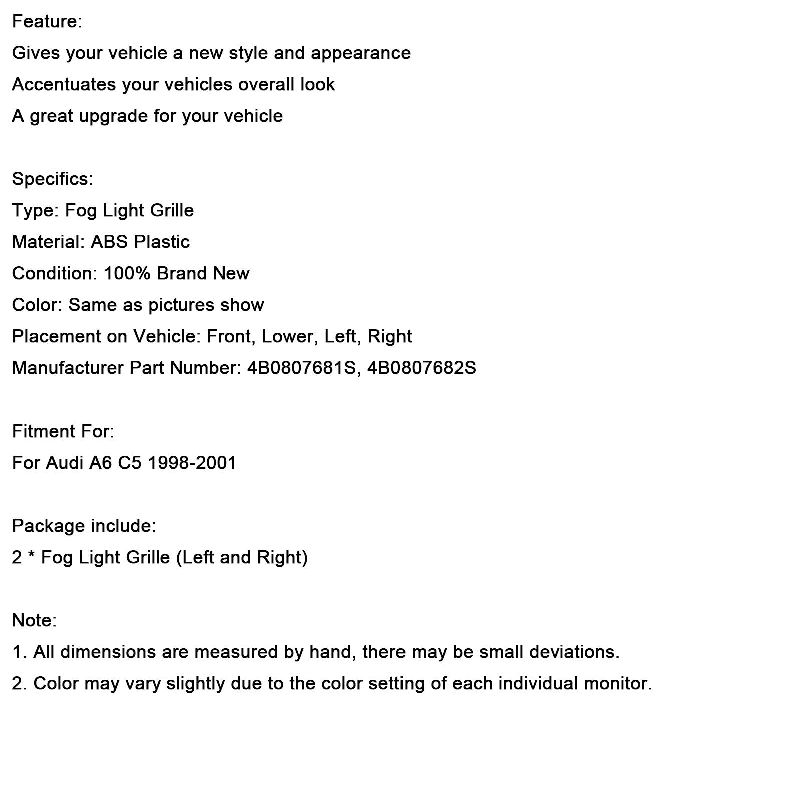 2PCS Front Lower Bumper Fog Light Cover Grille Fit Audi A6 C5 1998-2001