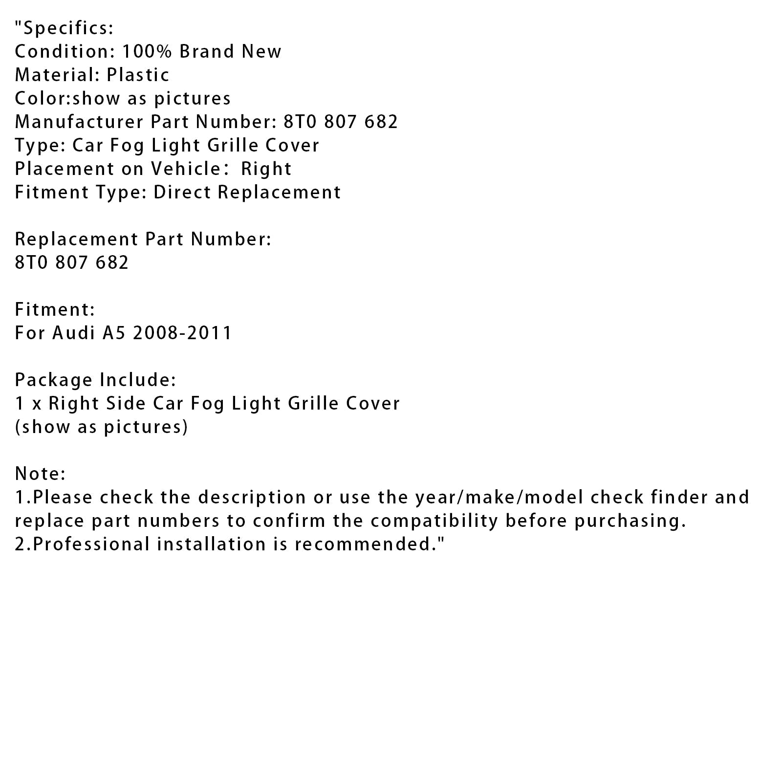 2008-2011 Audi A5 Car Right Side Fog Light Grille Cover 8T0 807 682