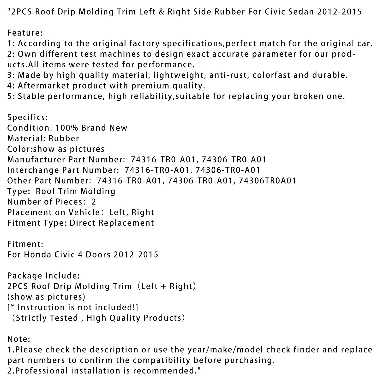 2012-2015 Honda Civic 4 Doors 2PCS Roof Drip Molding Trim Left & Right Side Rubber