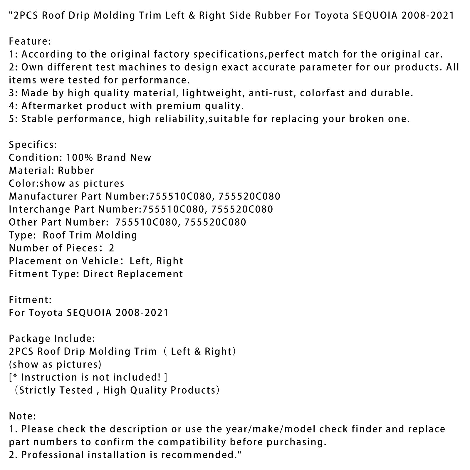 2008-2021 Toyota SEQUOIA 2PCS Roof Drip Molding Trim Left & Right Side Rubber