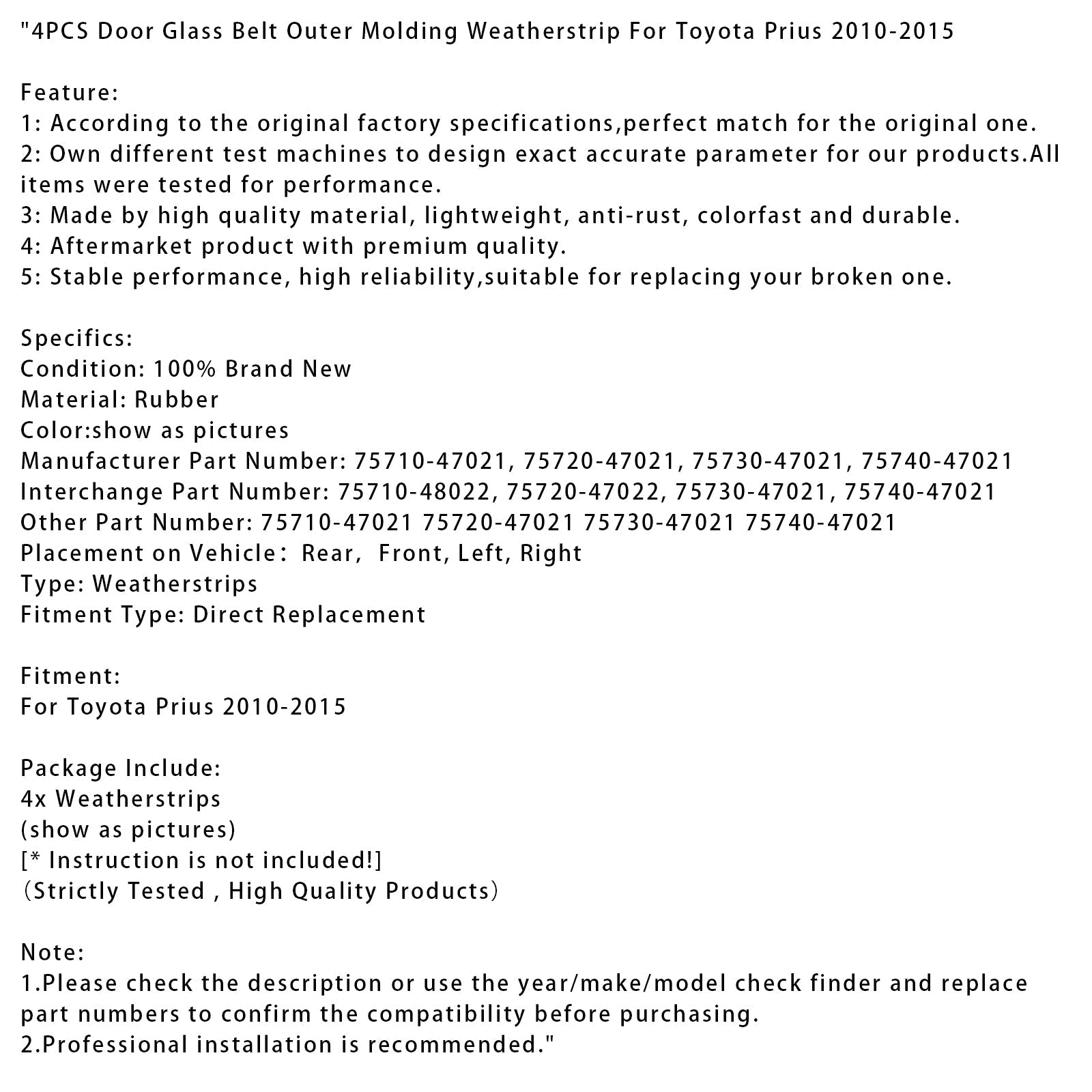 4PCS Door Glass Belt Outer Molding Weatherstrip For Toyota Prius 2010-2015