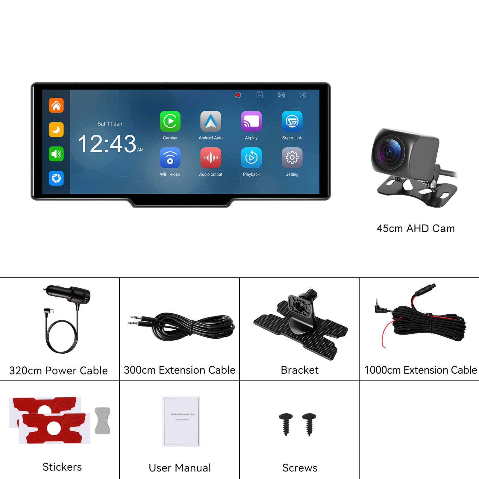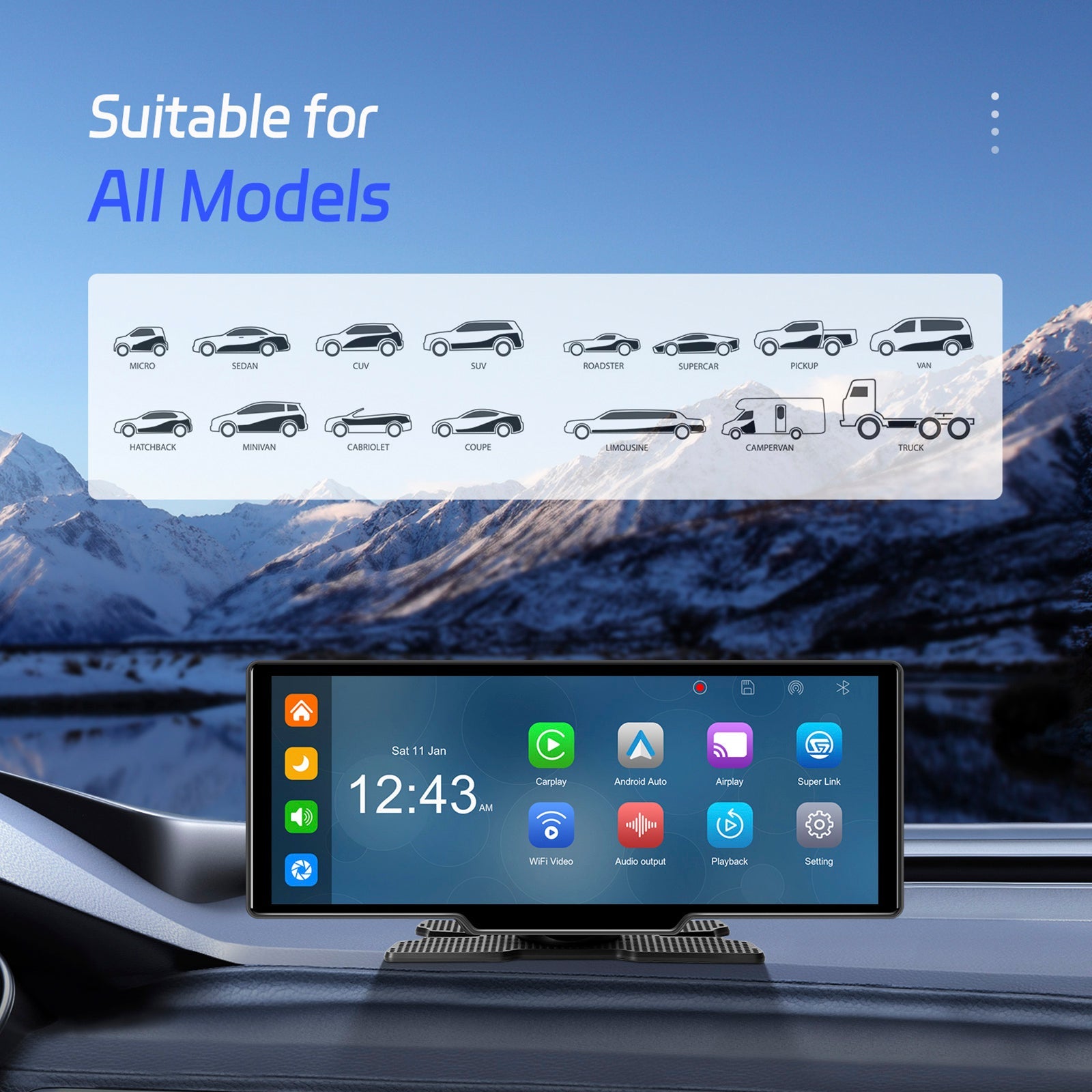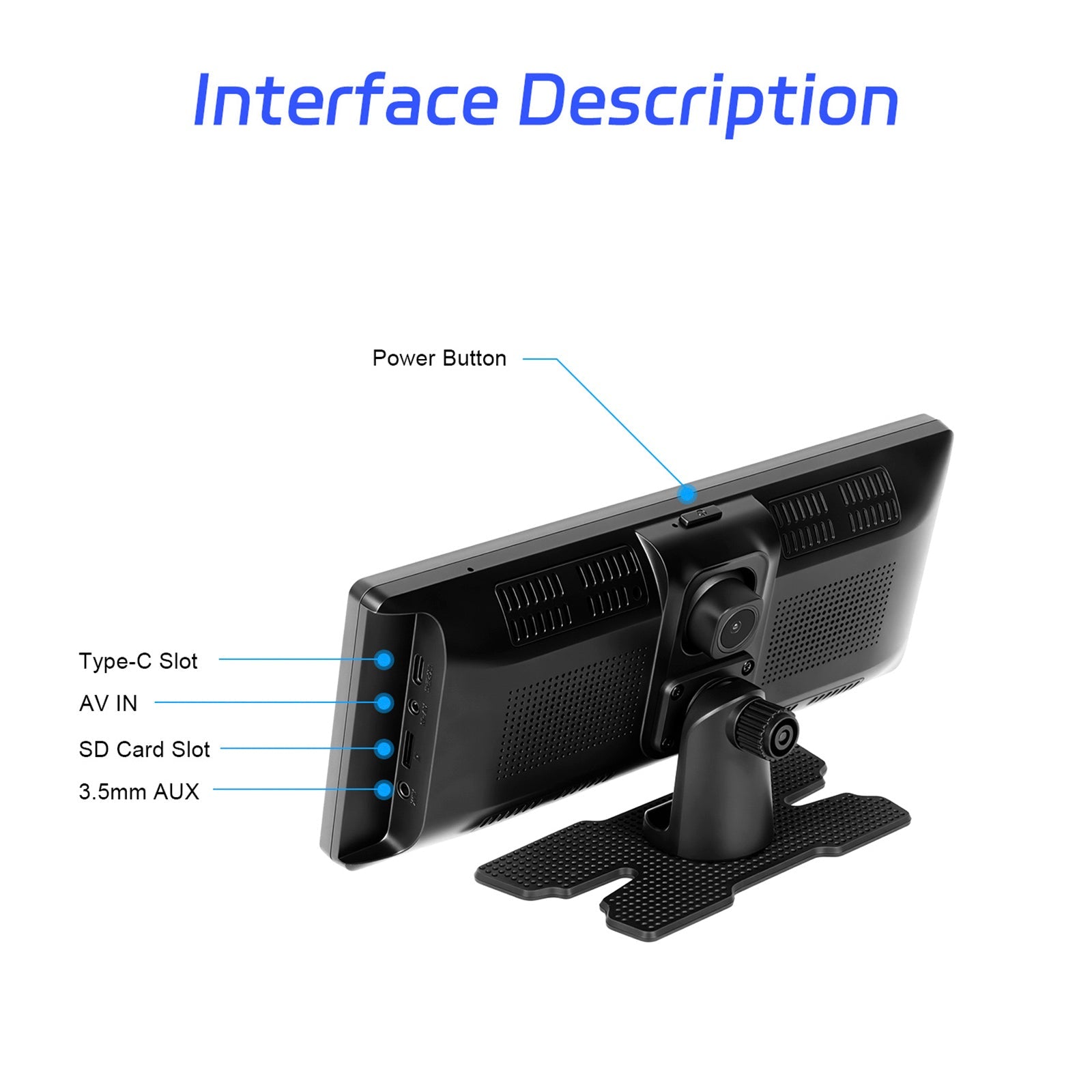 10.26" Portable Bluetooth Car Navigation Carplay HD Large Touch Screen Wireless Carplay Car Radio + AHD Camera