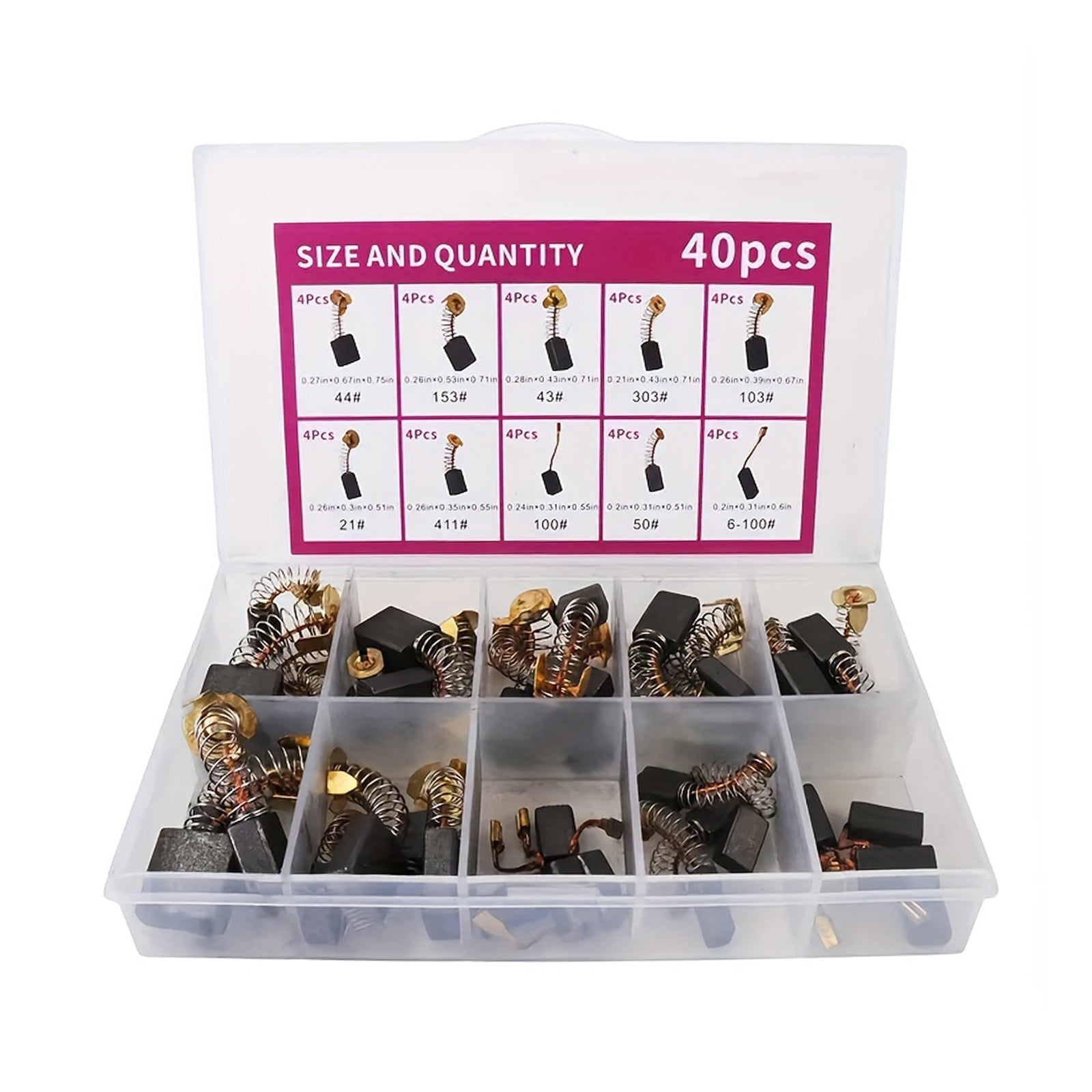 40Pcs 10 Sizes Electric Motor Carbon Brushes Replacement For Power Tool