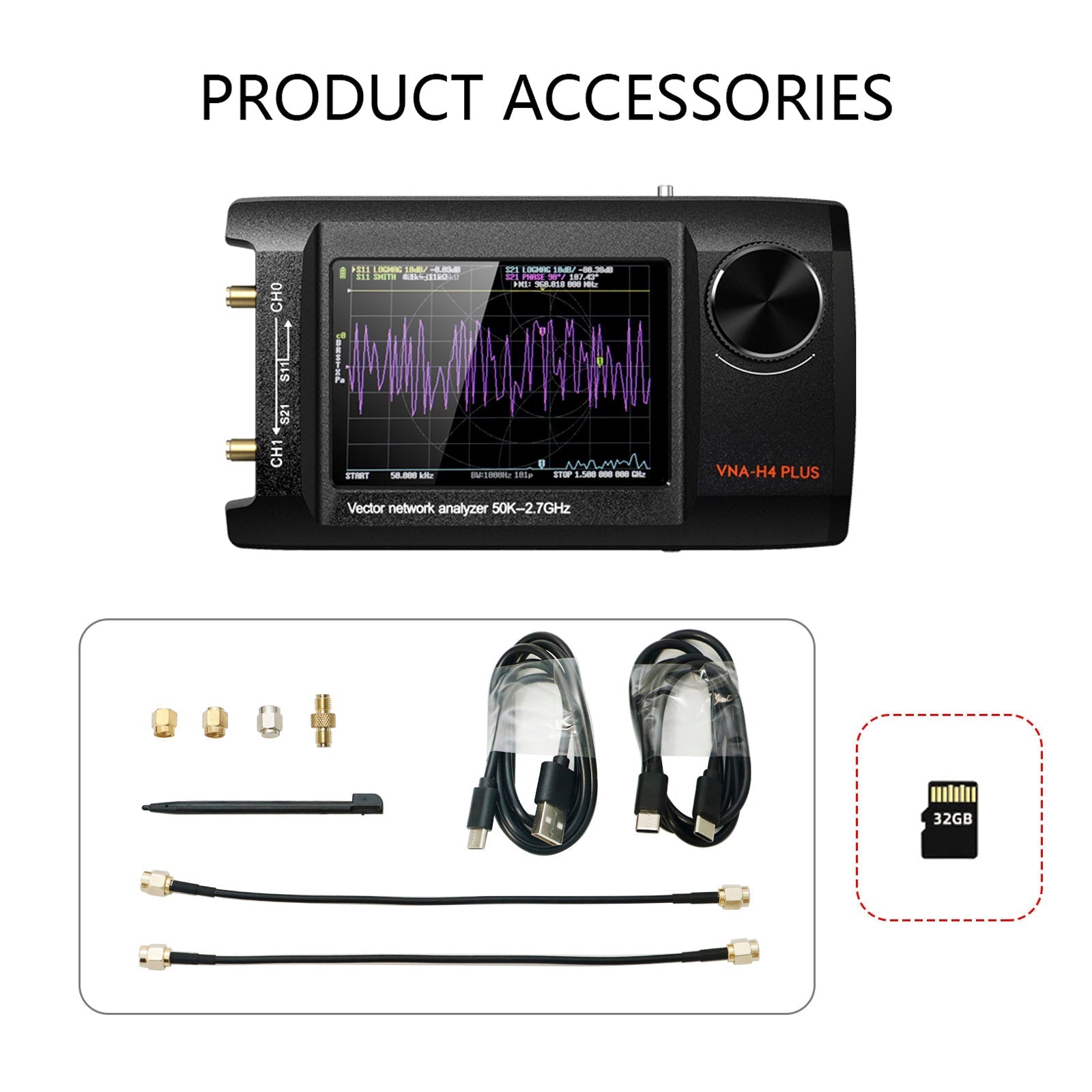 NanoVNA-H4 Plus is a portable handheld vector network analyzer (VNA) designed to measure reflection and transmission coefficients. Originally designed by edv555. After several upgrades, VNA-H4 is the highest performance version at present, with the measurement frequency range upgraded to 50KHz-2.7GHz, and the performance is better than the previous version.