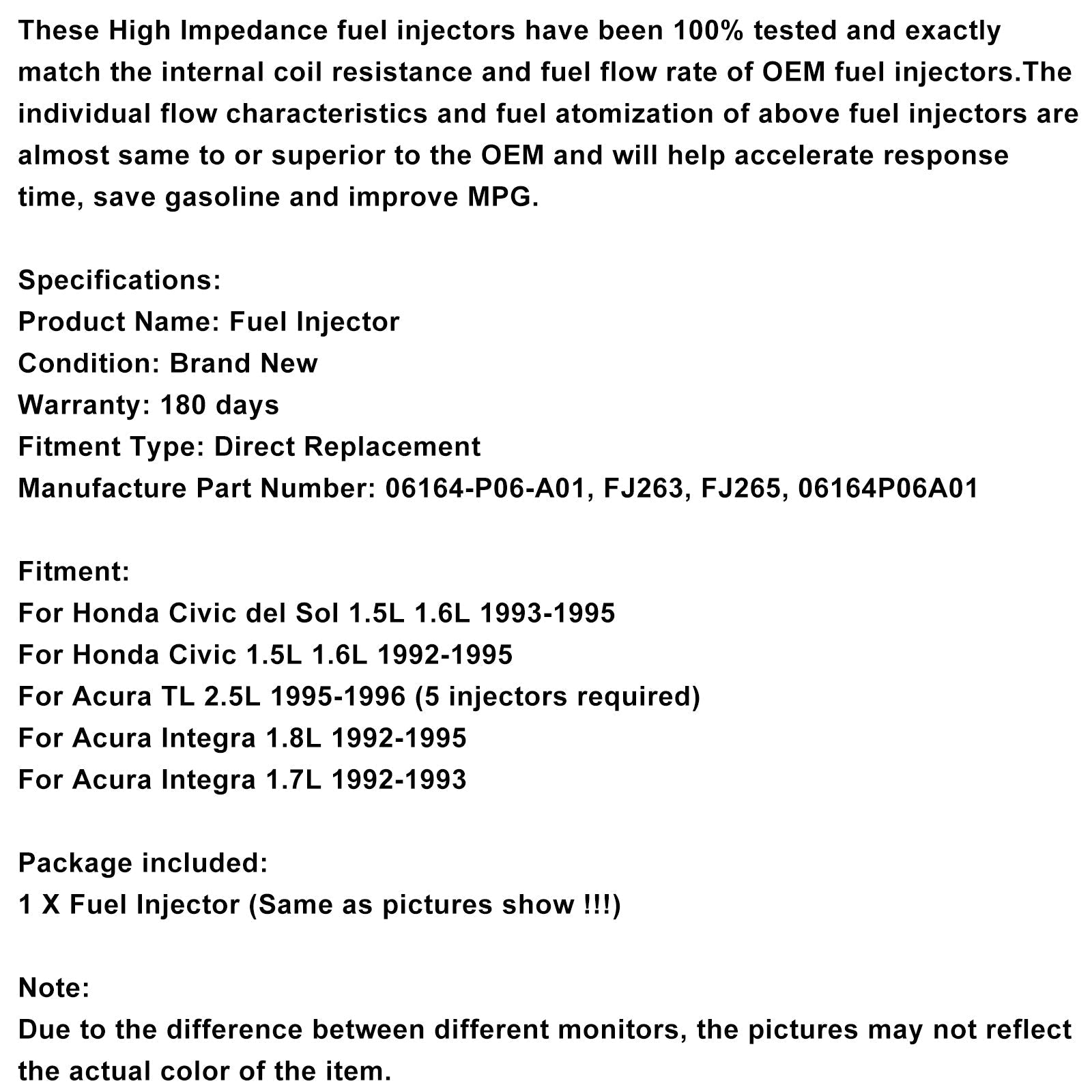 1PCS Fuel Injector 06164-P06-A01 Fit Civic Del Sol 1.5L 1.6L Integra 1.7L 1.8L