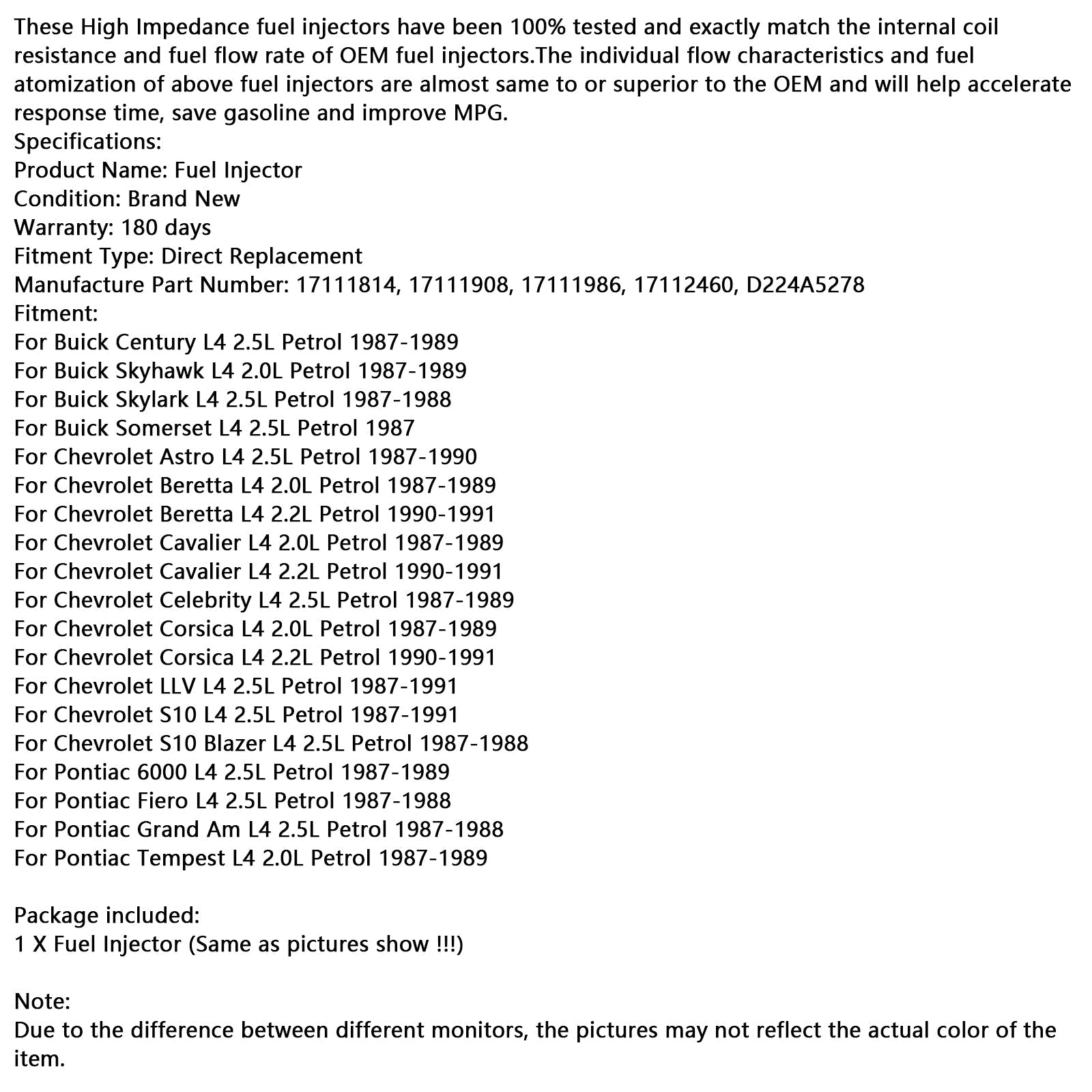 1PCS Fuel Injector 17111814 Fit Chevy Cavalier Corsica Fit Buick Century
