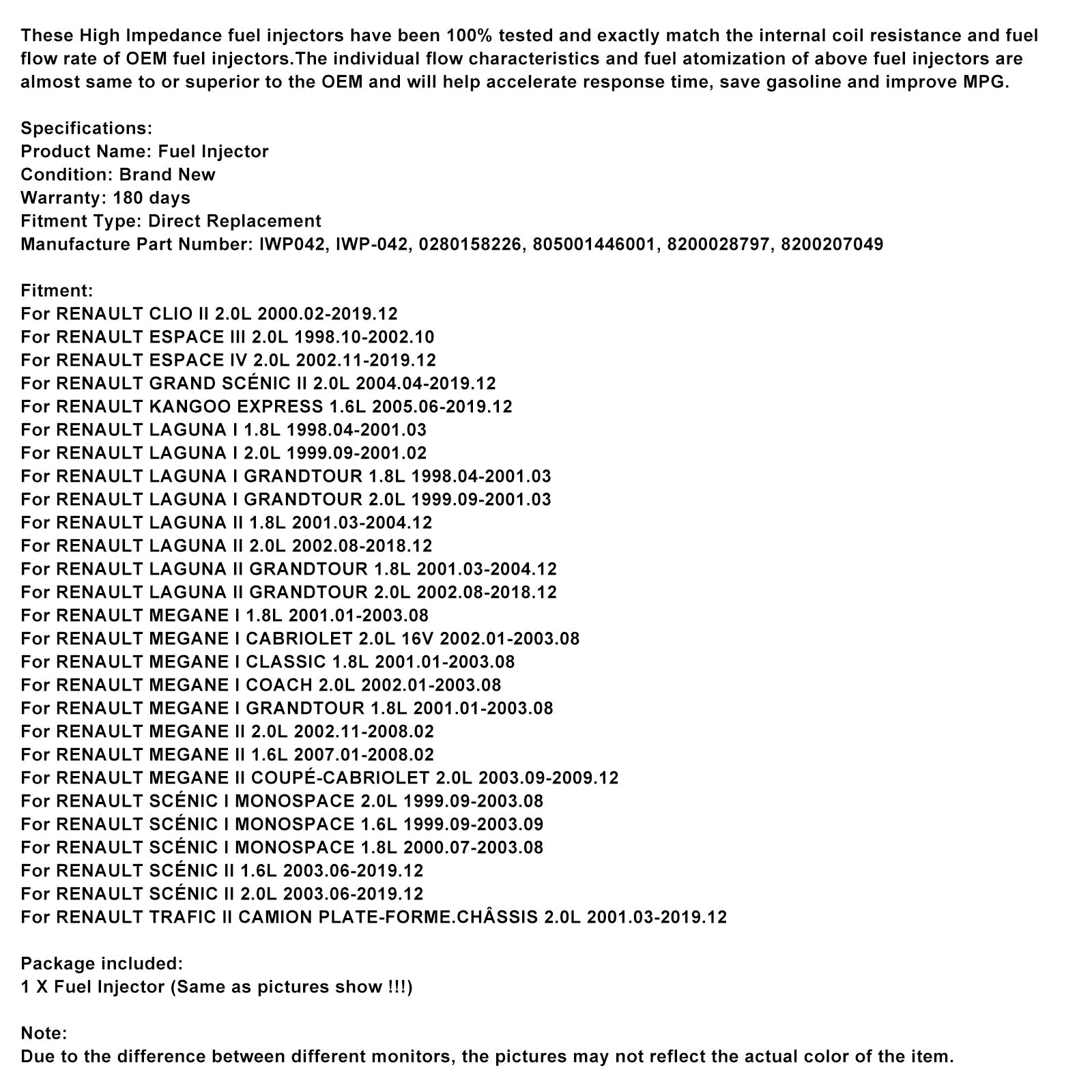 4PCS Fuel Iniector IWP042 Fit Renault Clio Espace Kangoo Laguna Megane
