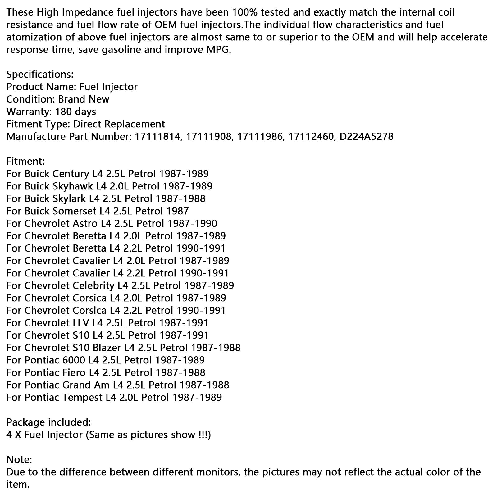 4PCS Fuel Injector 17111814 Fit Chevy Cavalier Corsica Fit Buick Century