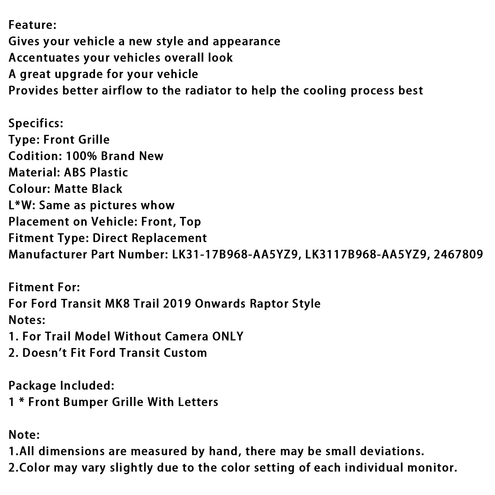 Ford Transit MK8 Trail 2019-Onwards Raptor Style Front Bumper Grille 2467809