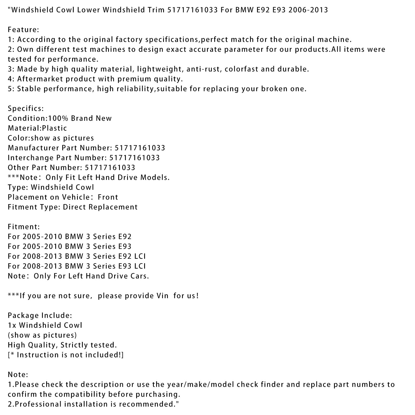 Windshield Cowl Lower Windshield Trim 51717161033 For BMW E92 E93 2006-2013