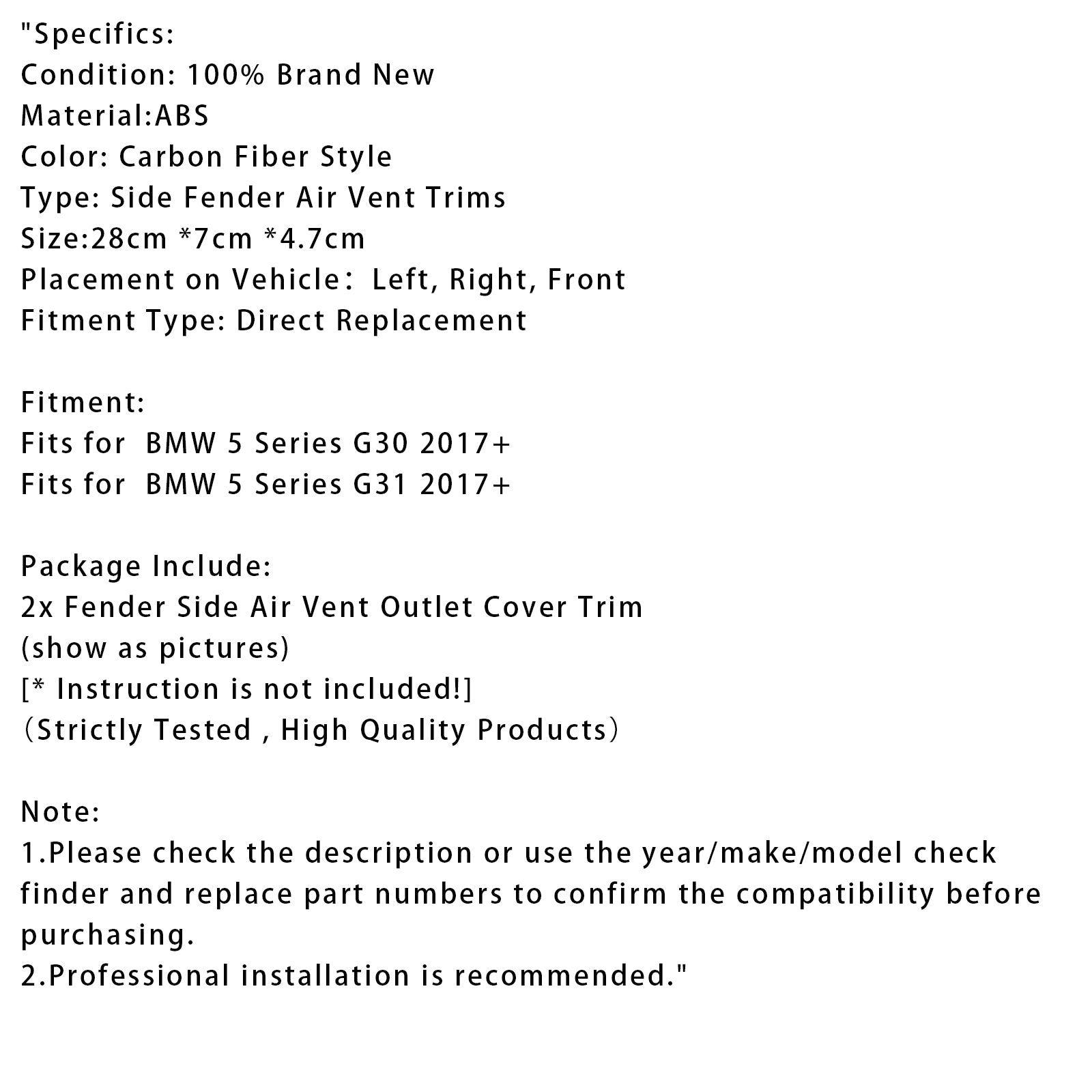 Carbon Fiber Style Fender Side Air Vent Trims For BMW 5 Series G30 2017+