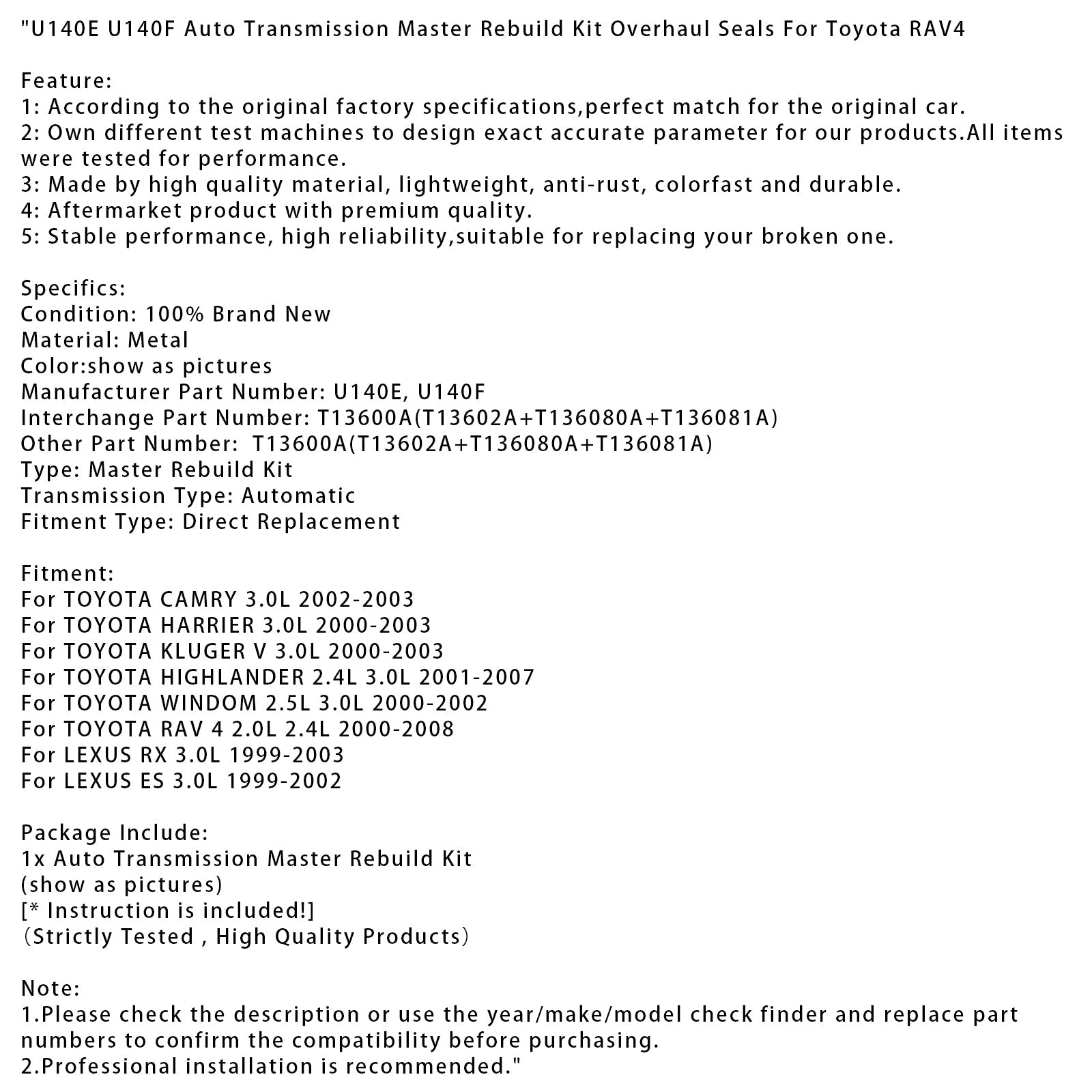 U140E U140F Auto Transmission Master Rebuild Kit Overhaul Seals For Toyota RAV4