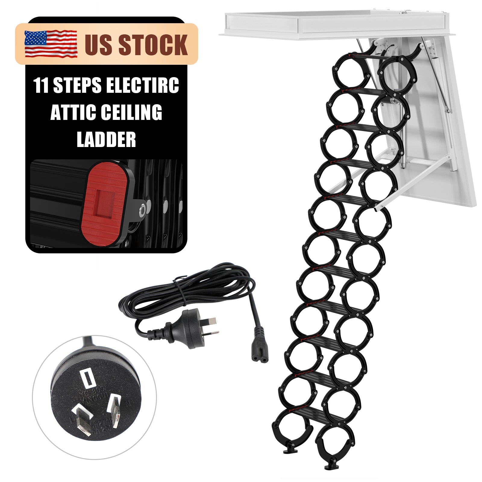11 Steps Black Loft Folding Electirc Attic Ceiling Ladder Stairs 31.5*43.31" Australian Standard Plug
