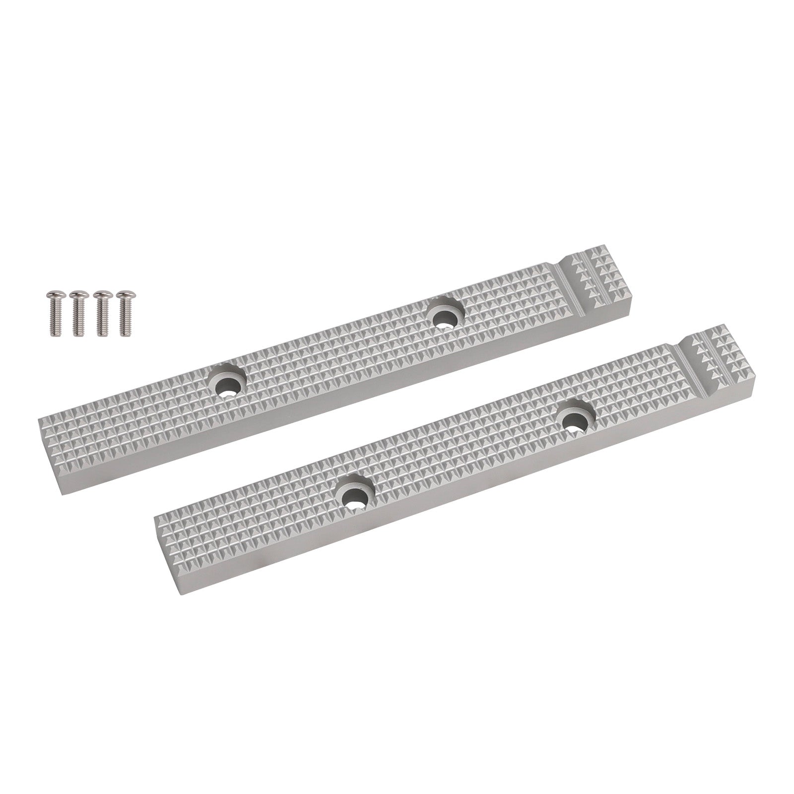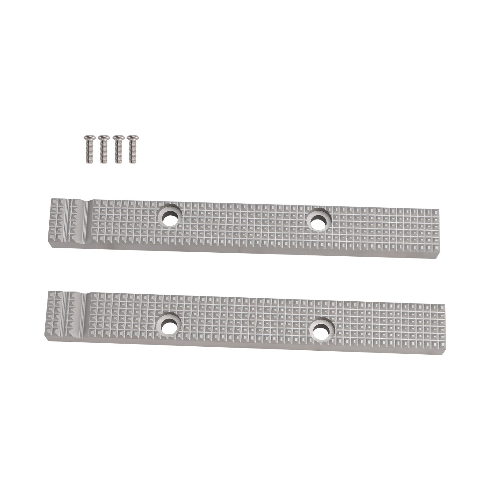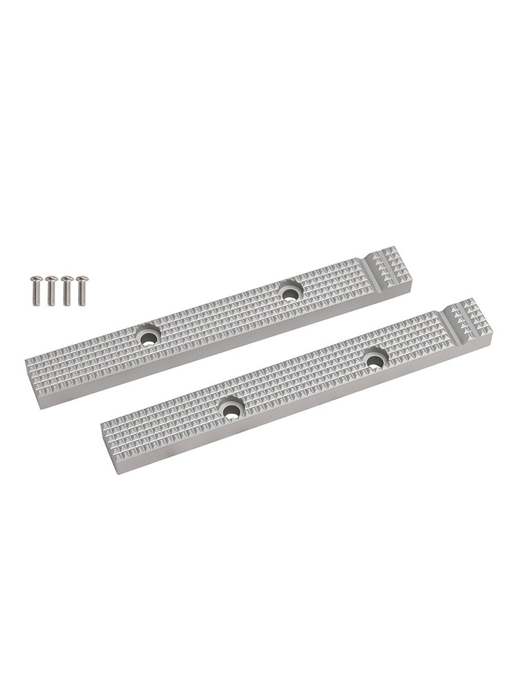 【Tool Features】The jaws feature two grooves on one side, are reversible, and measure 6 1/2" wide, 3/4" high, and 7/16" thick, with 2 1/2" C-C mounting screw holes. Expect slight overhang on each side.