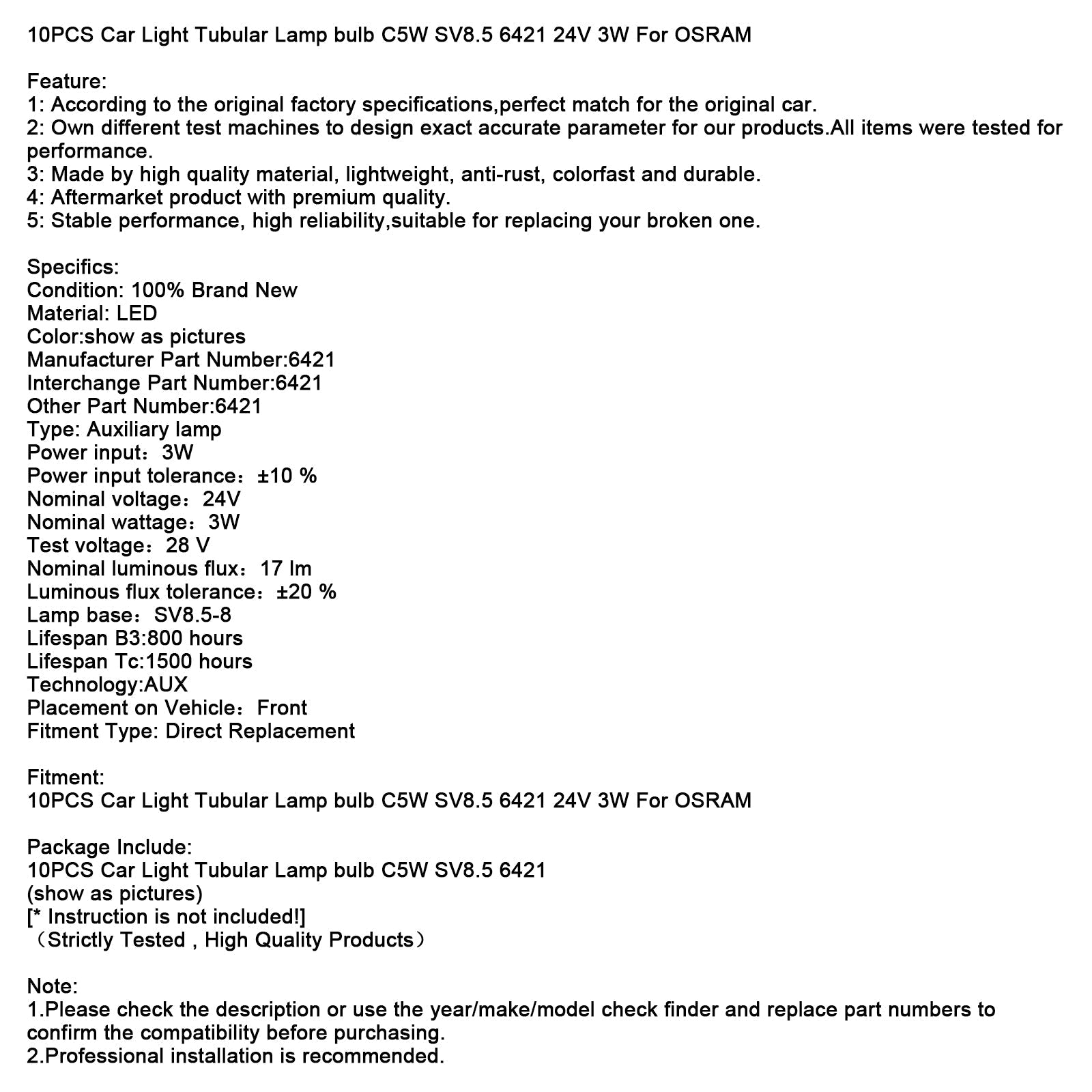 10PCS Car Light Tubular Lamp bulb C5W SV8.5 6421 24V 3W For OSRAM