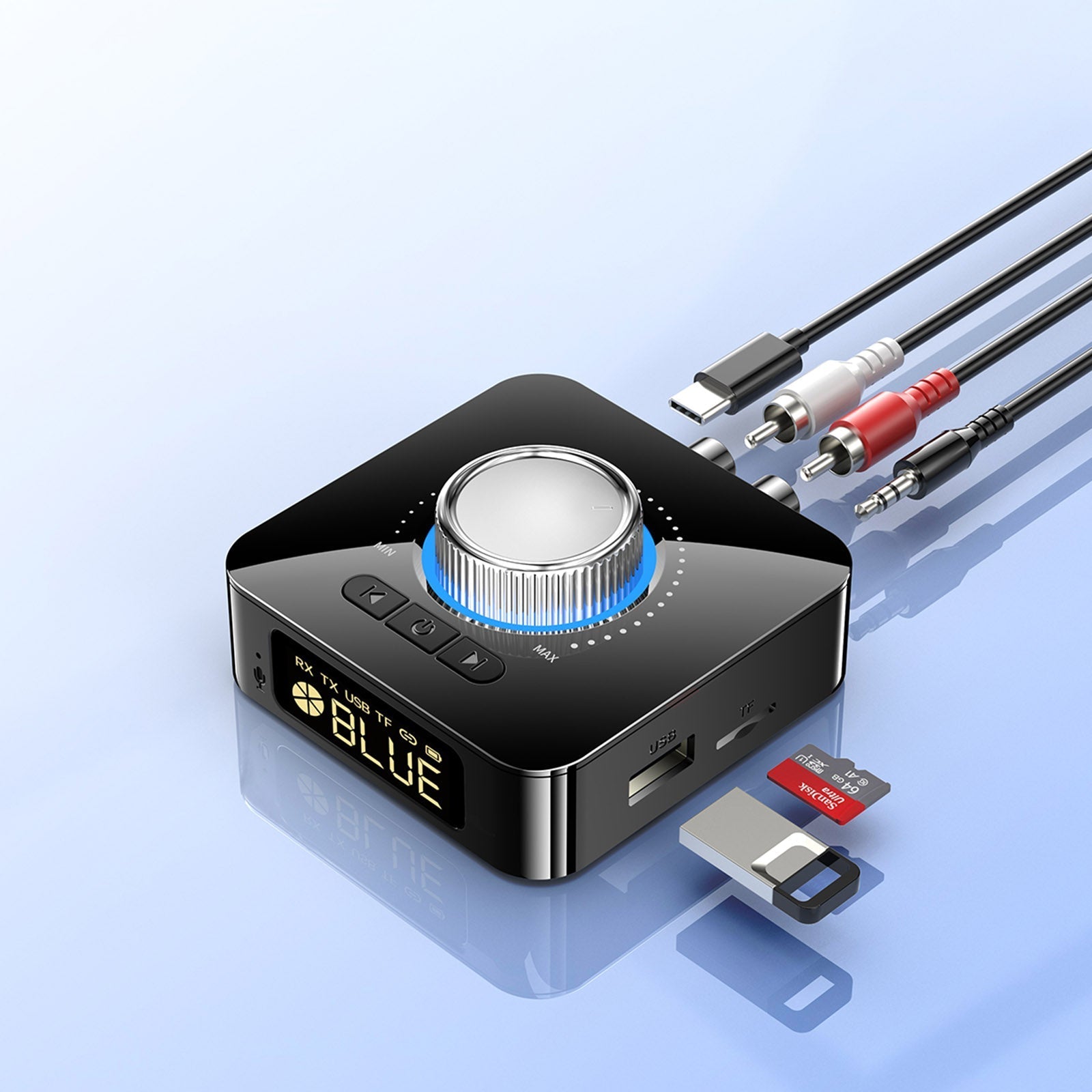 5. Built-in digital to analog chip, support AUX, RCA, USB, TF interface.