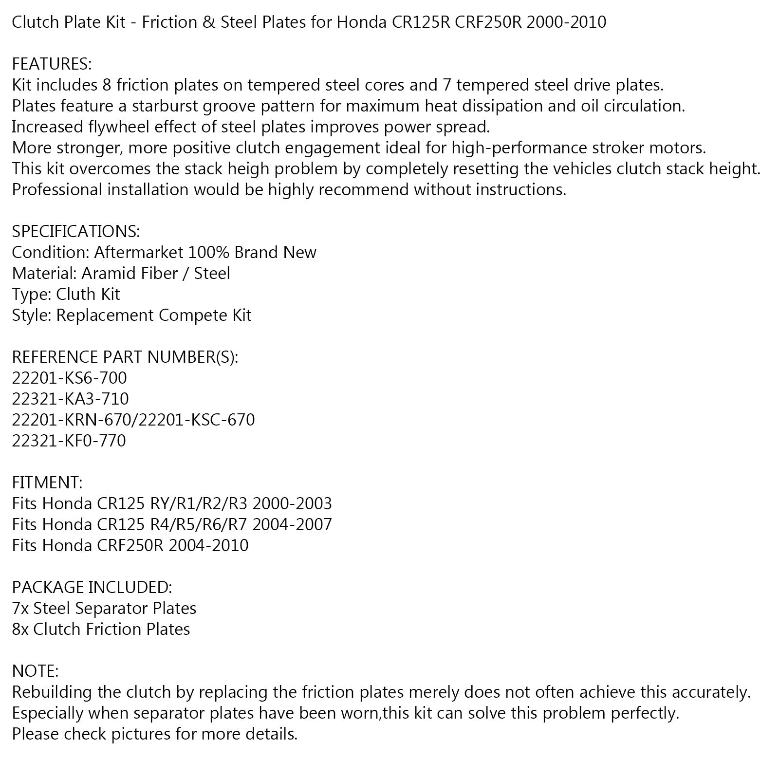 Clutch Kit Steel & Friction Plates for Honda CR 125 R CRF 250 R 2000-2010 Generic