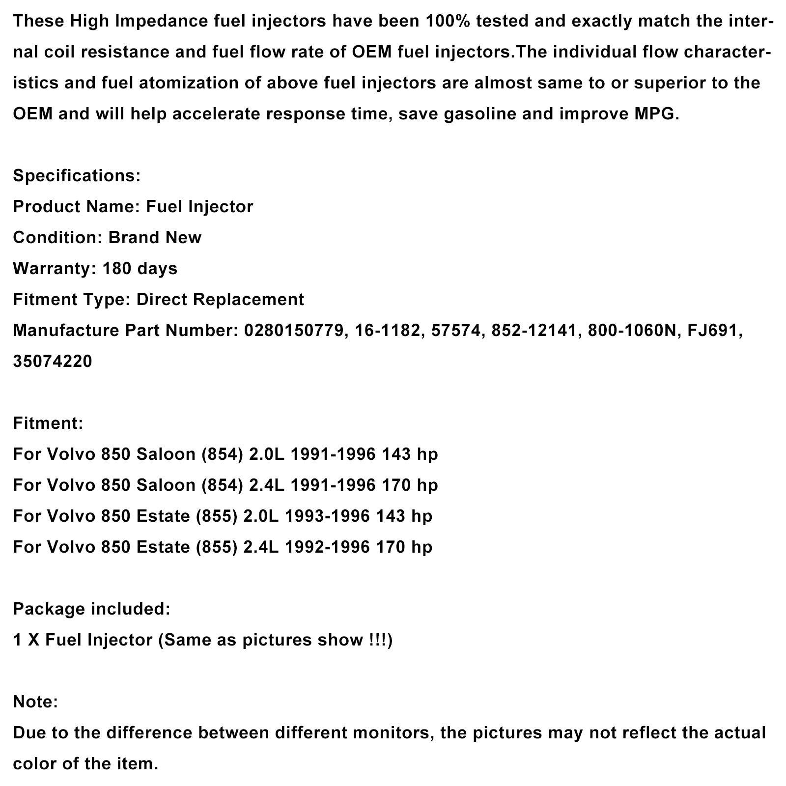 1PCS Fuel Injector 0280150779 Fit Volvo 850 2.4L 2.0L I5 1991-1997 852-12141