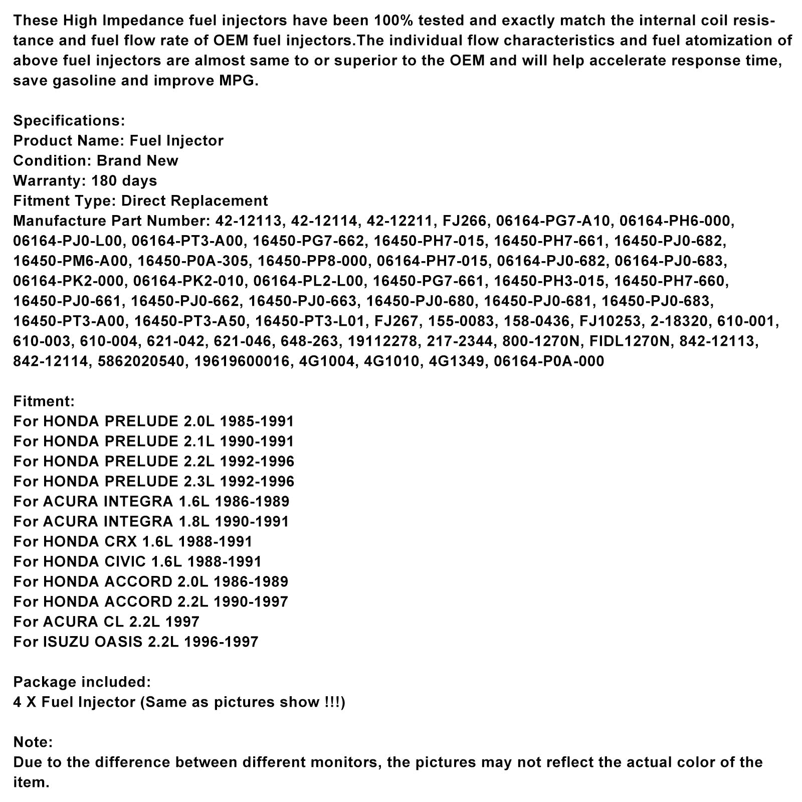 4PCS Fuel Injector 06164-P0A-000 Fit Honda Accord Prelude Civic 1990-1997