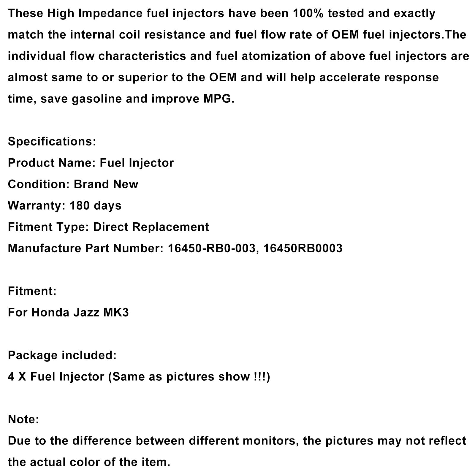 Honda Jazz MK3 Petrol 4PCS Fuel Injector 16450-RB0-003 16450RB0003
