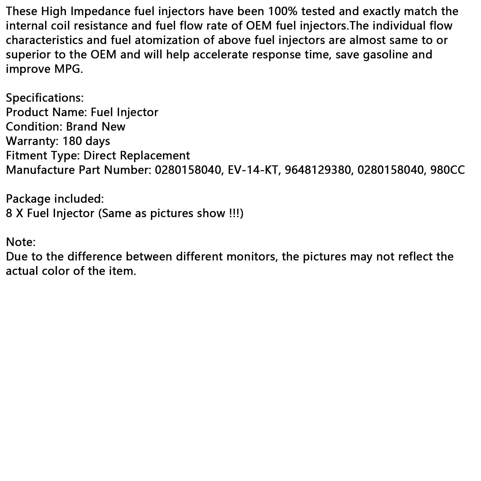 8PCS 980CC Fuel Injector 0280158040 Fit Bosch Nozzle Valve EV14KT Petrol
