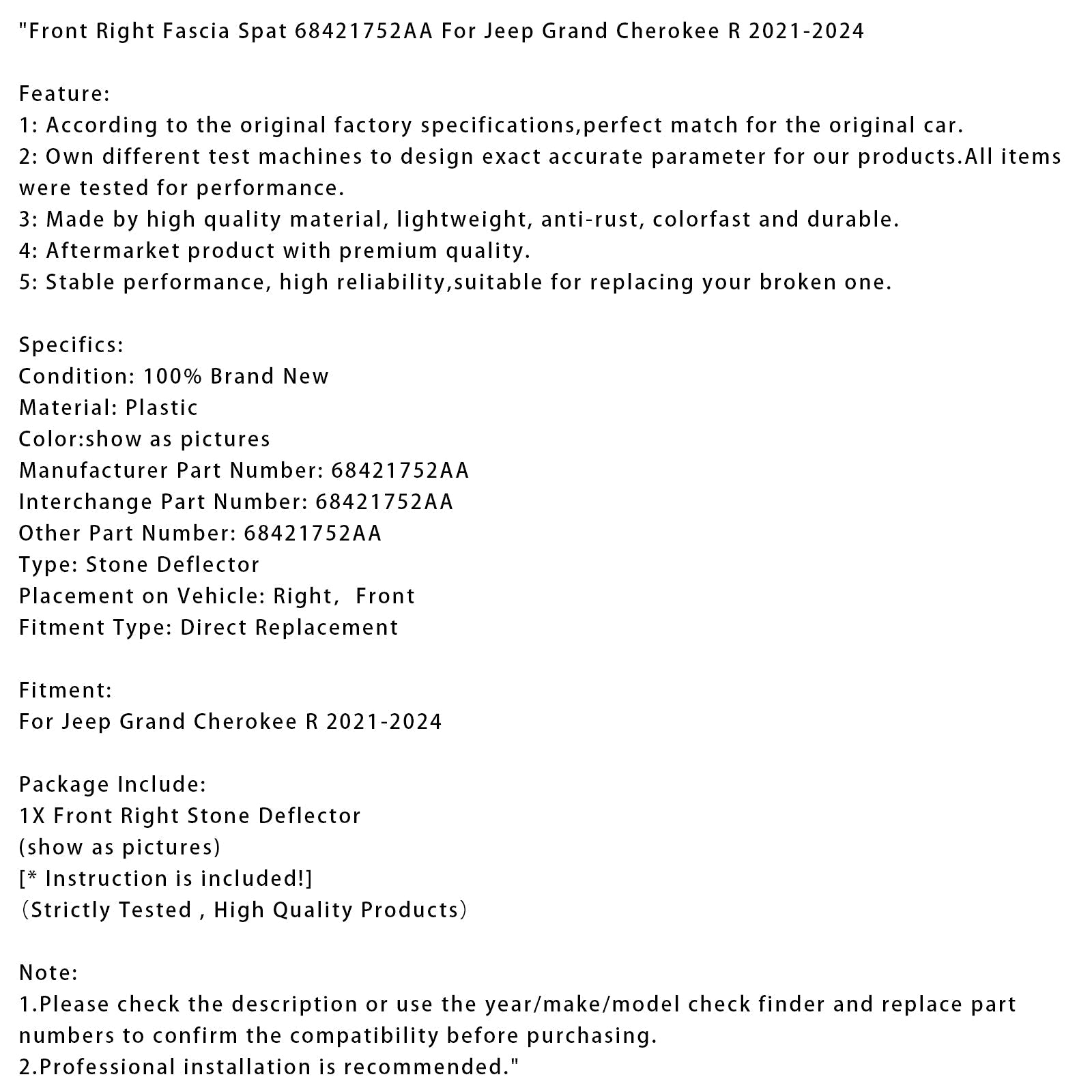 Front Right Fascia Spat 68421752AA For Jeep Grand Cherokee R 2021-2024