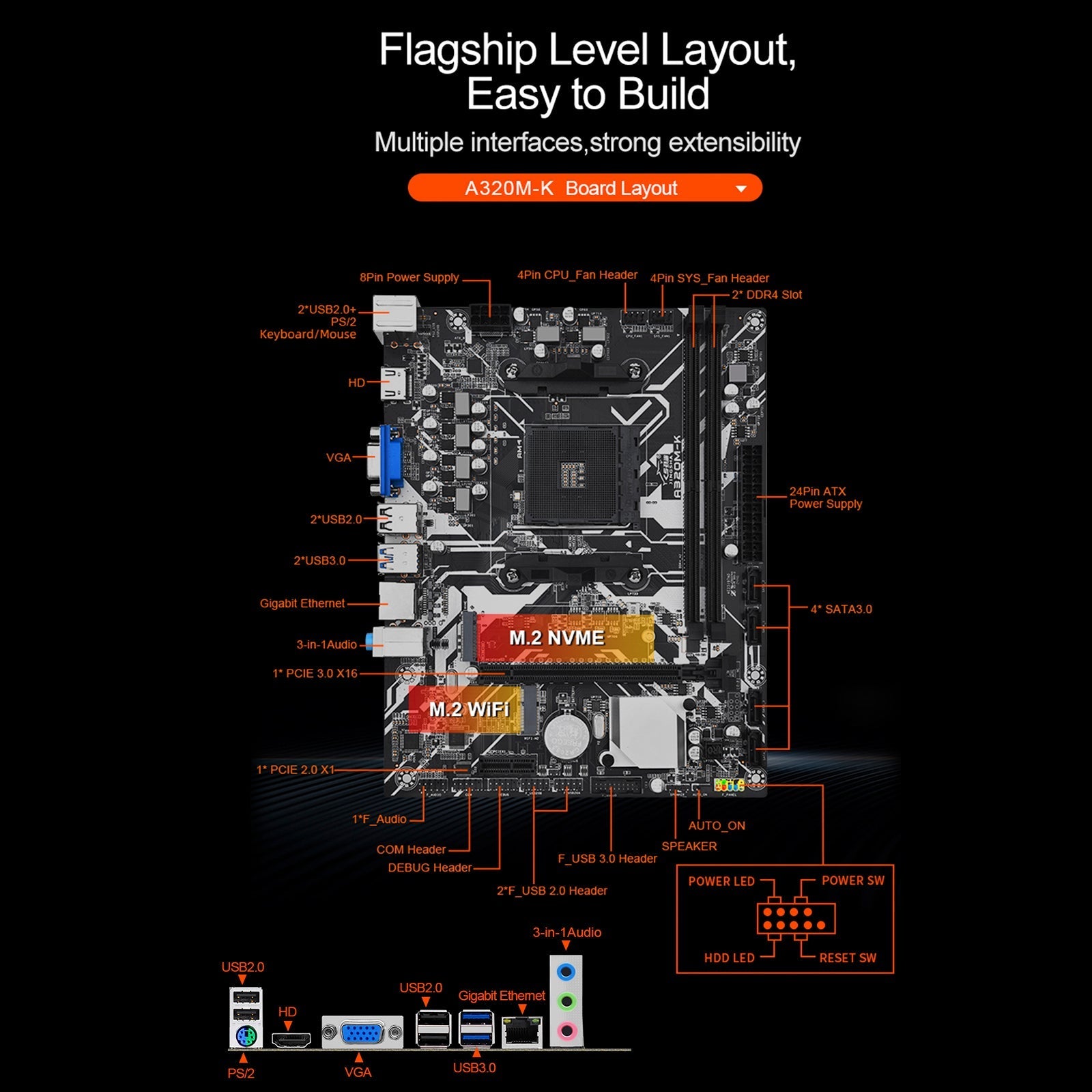 A320M-K Computer Motherboard Desktop AMD Socket AM4 CPU supports WIFI NVME Gigabit Network Card