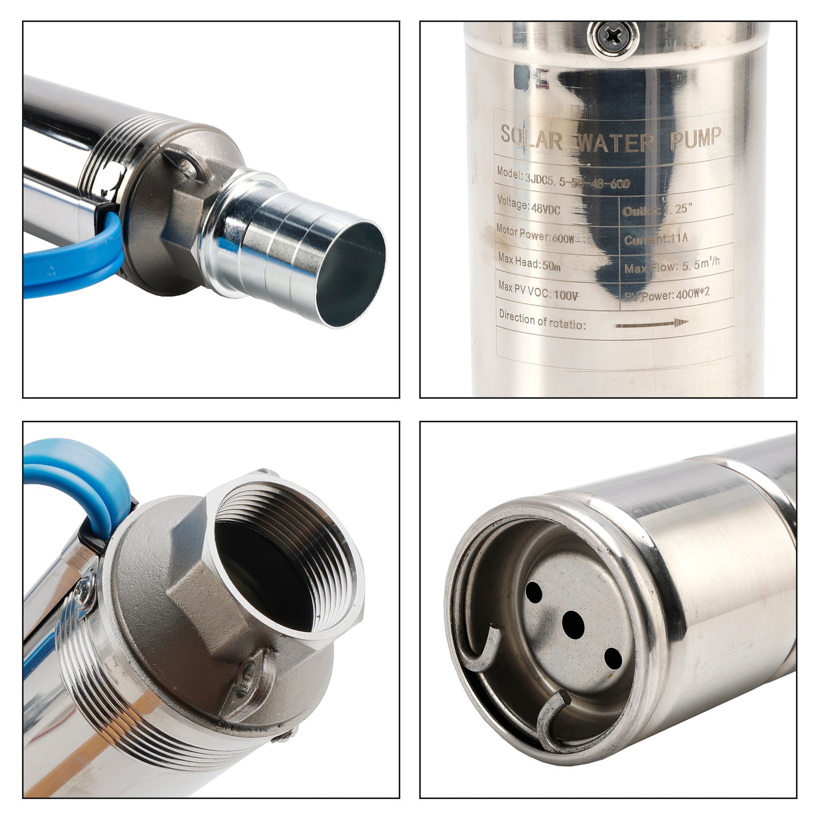 3" 600W Solar Pump Submersible Pump Bore DC 48V Deep Well Pump + MPPT Controller