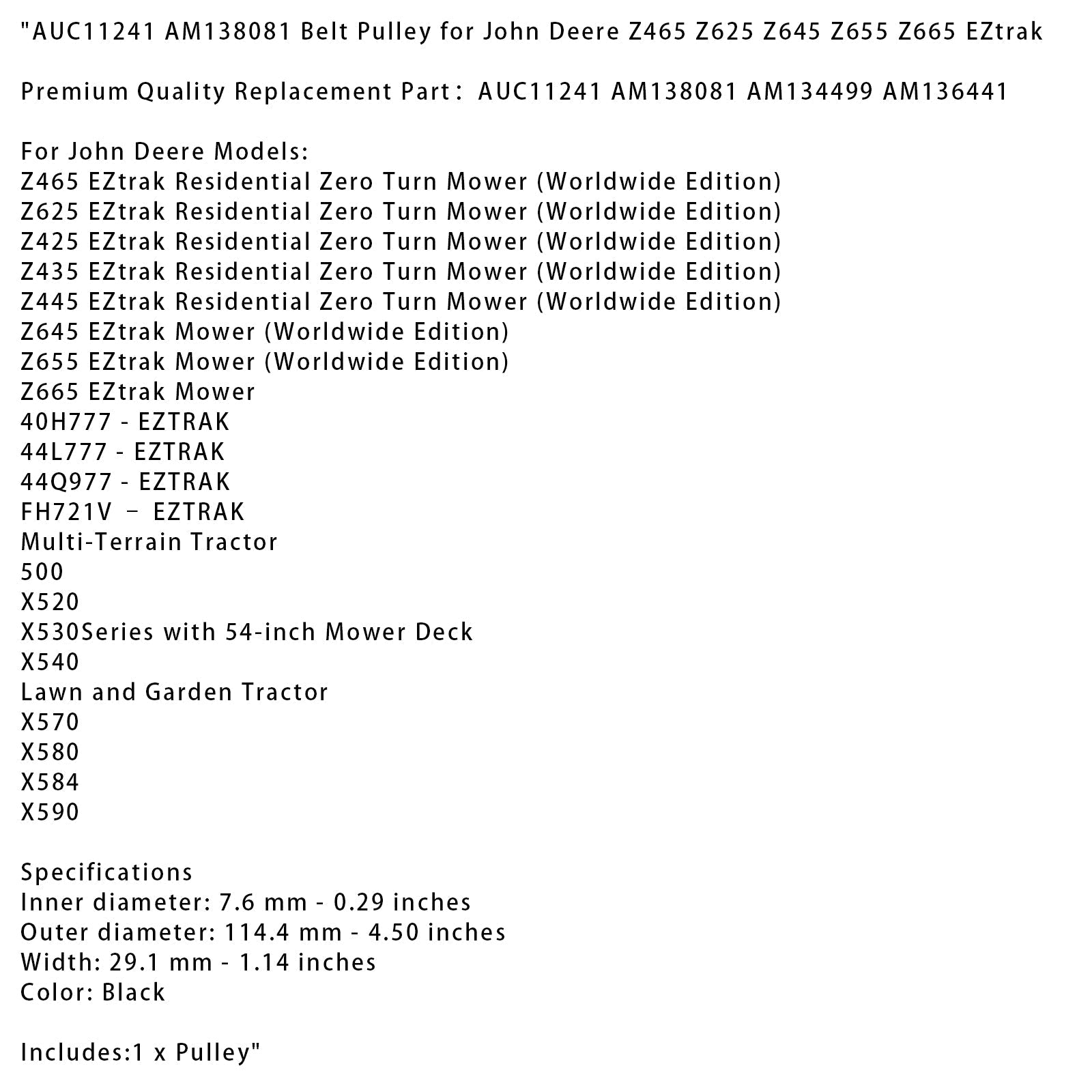 AUC11241 AM138081 Belt Pulley for John Deere Z465 Z625 Z645 Z655 Z665 EZtrak