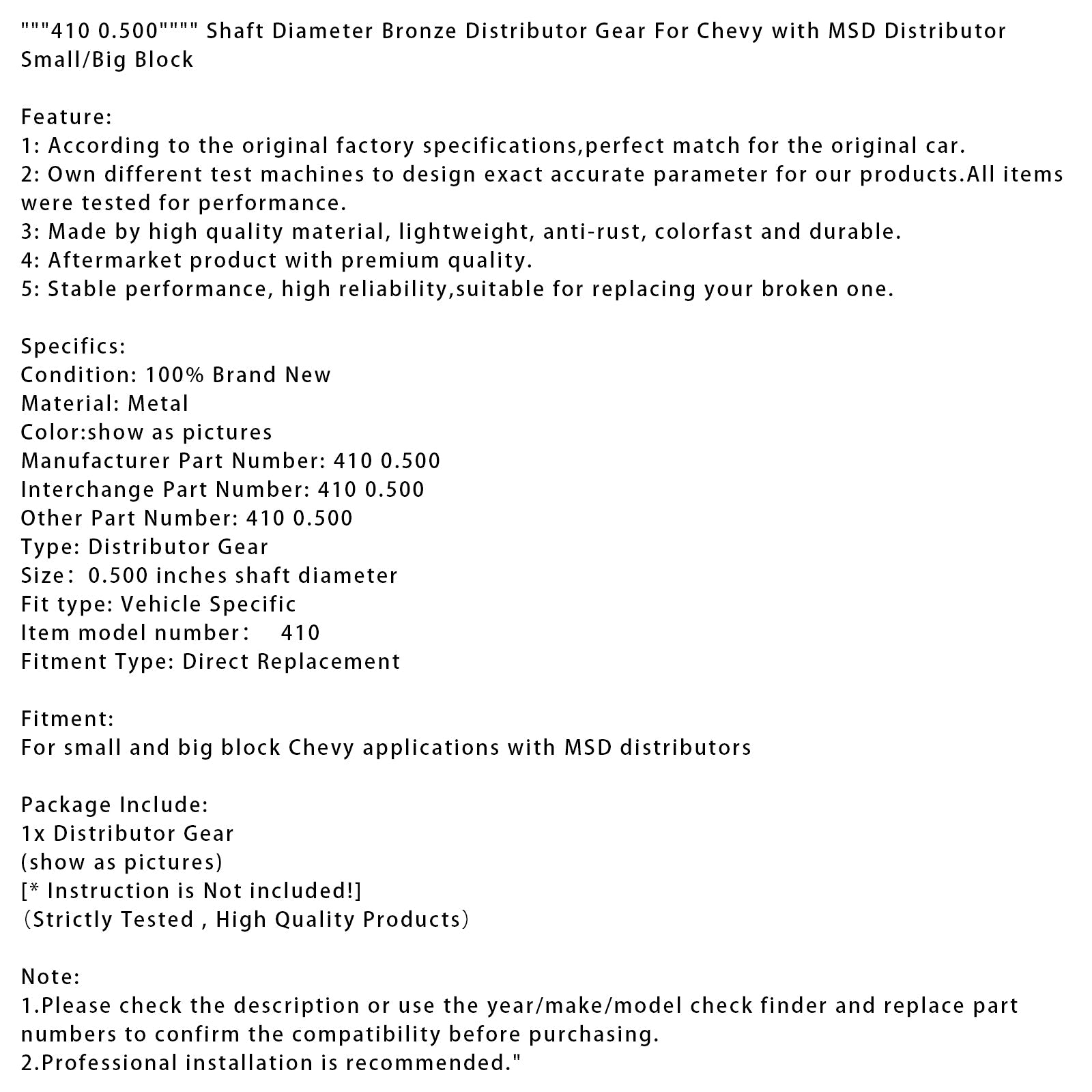 "410 0.500"" Shaft Diameter Bronze Distributor Gear For Chevy with MSD Distributor Small/Big Block