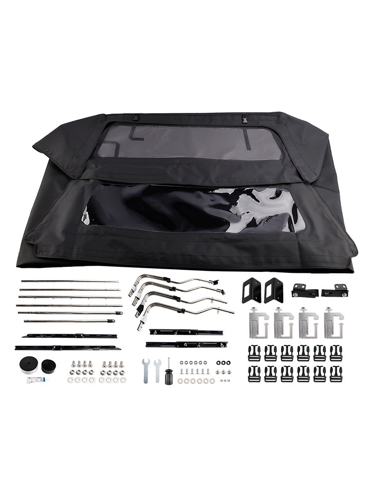 When not in use, the top is stored in the convenient built-in storage system along with the side panels.