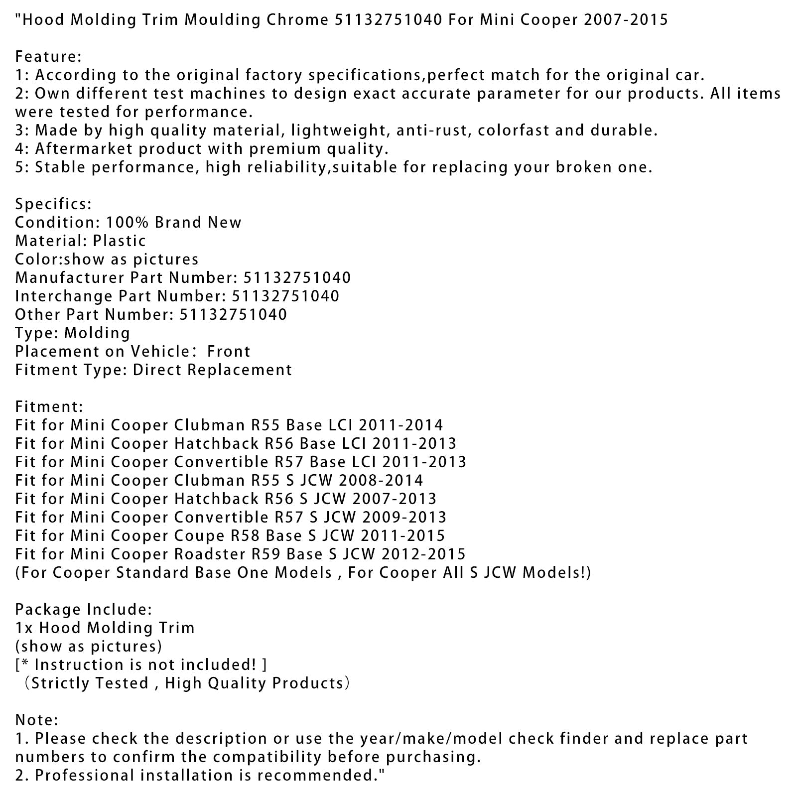 Hood Molding Trim Moulding Chrome 51132751040 For Mini Cooper 2007-2015