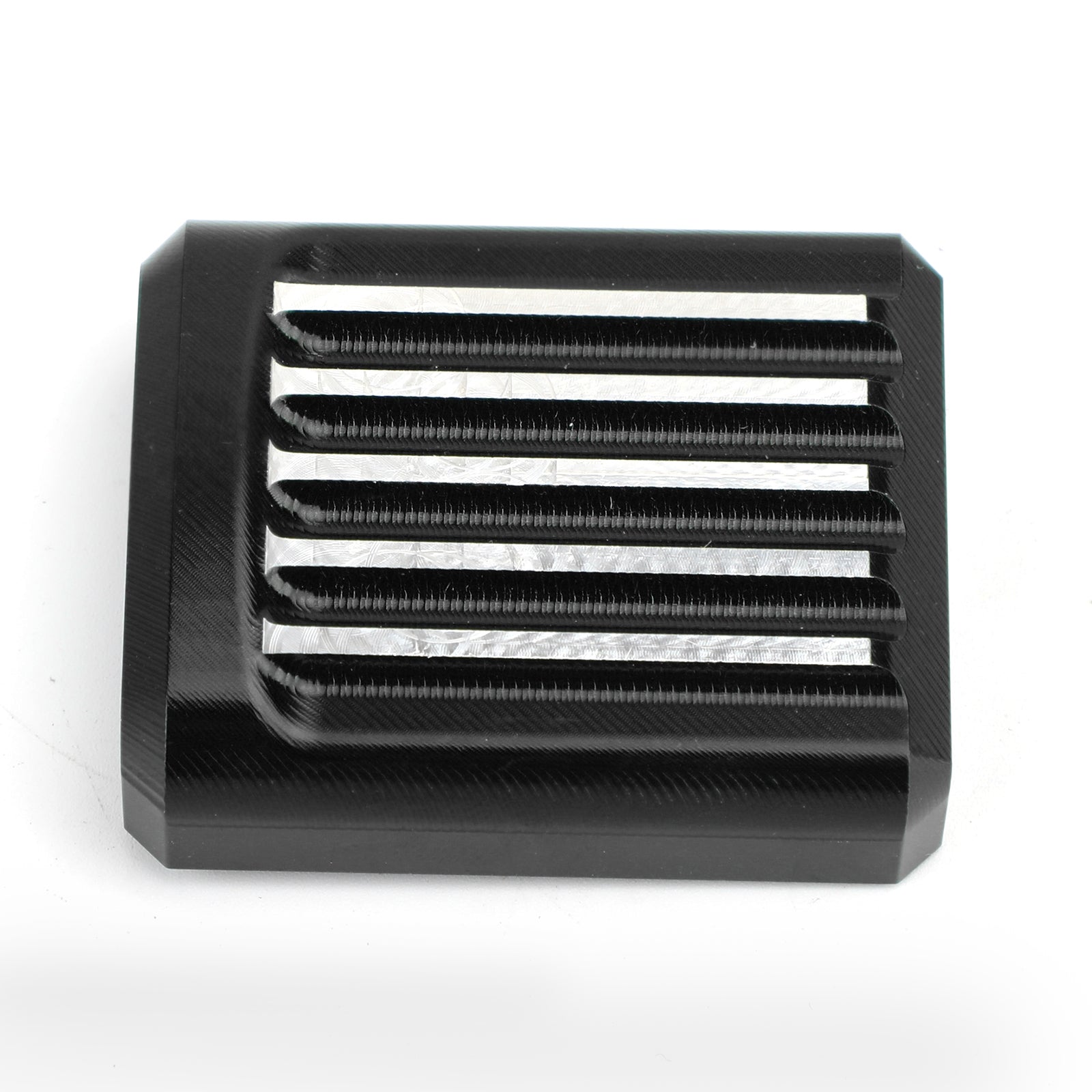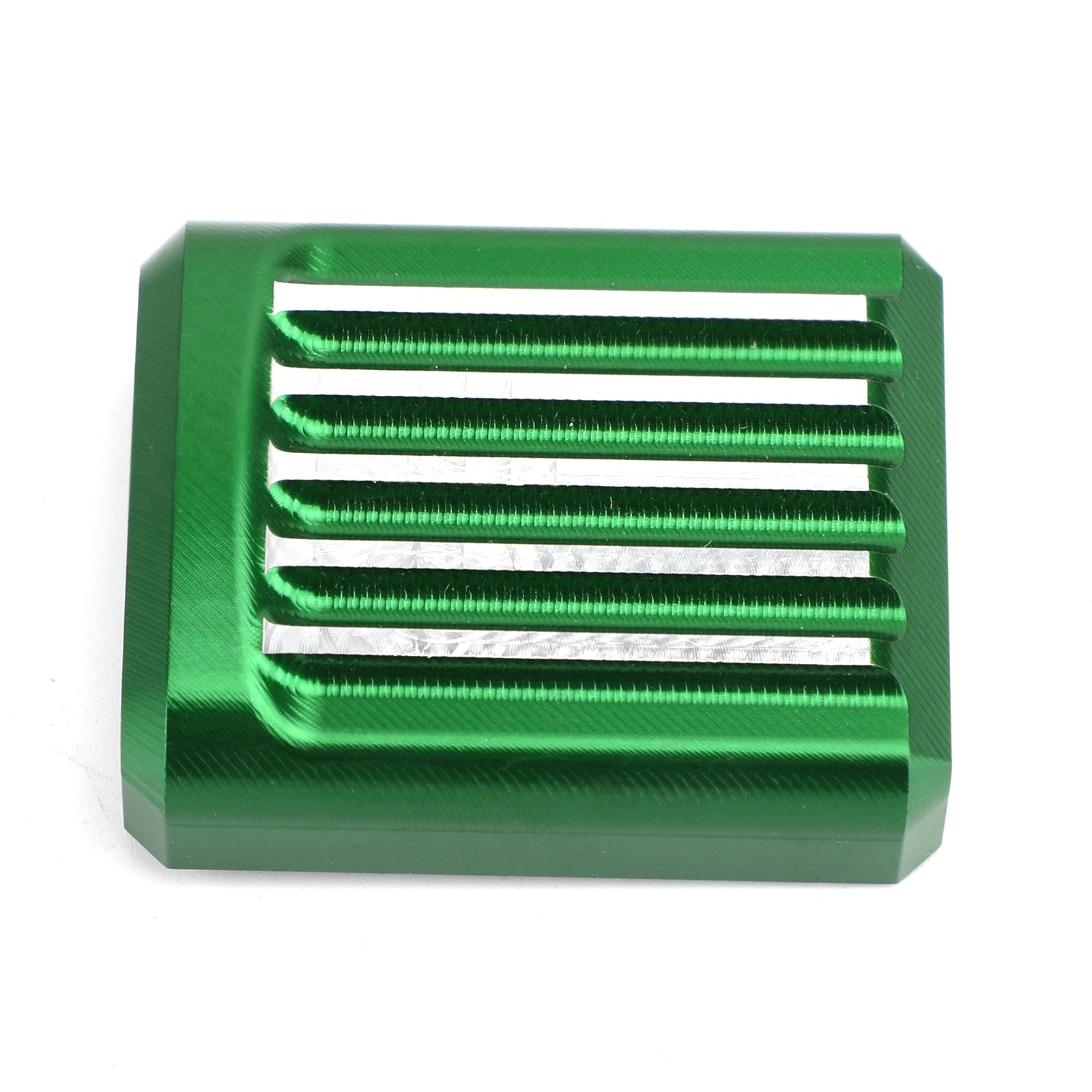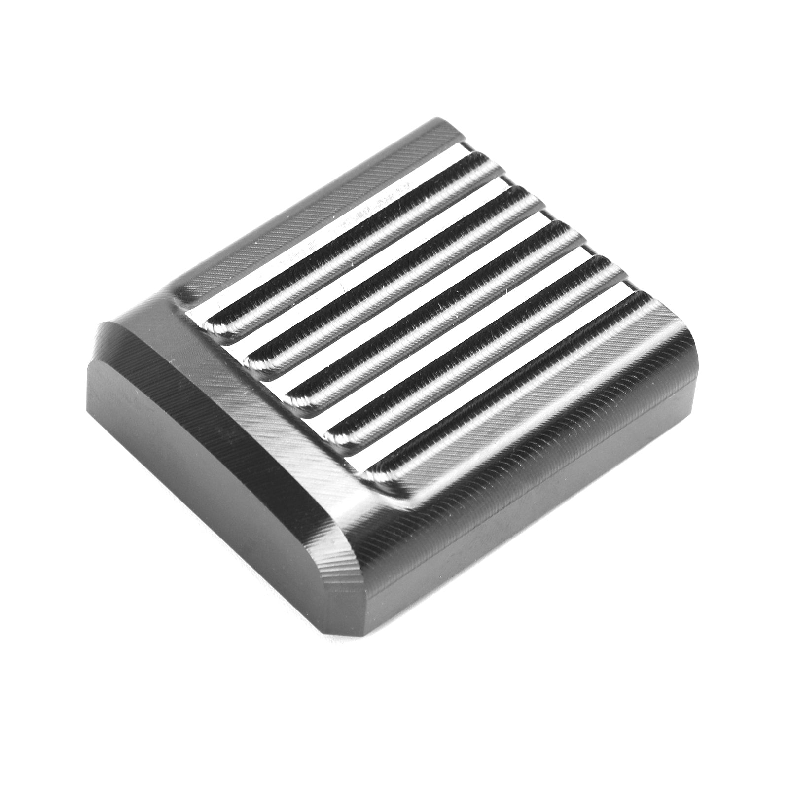 This machined aluminum plate simply bolts onto the rear brake pedal with no modifications needed.