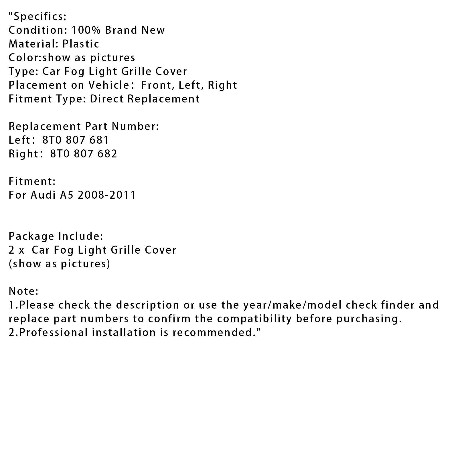 2008-2011 Audi A5 A Pair Of Car Fog Lamp Grilles 8T0 807 682 8T0 807 681