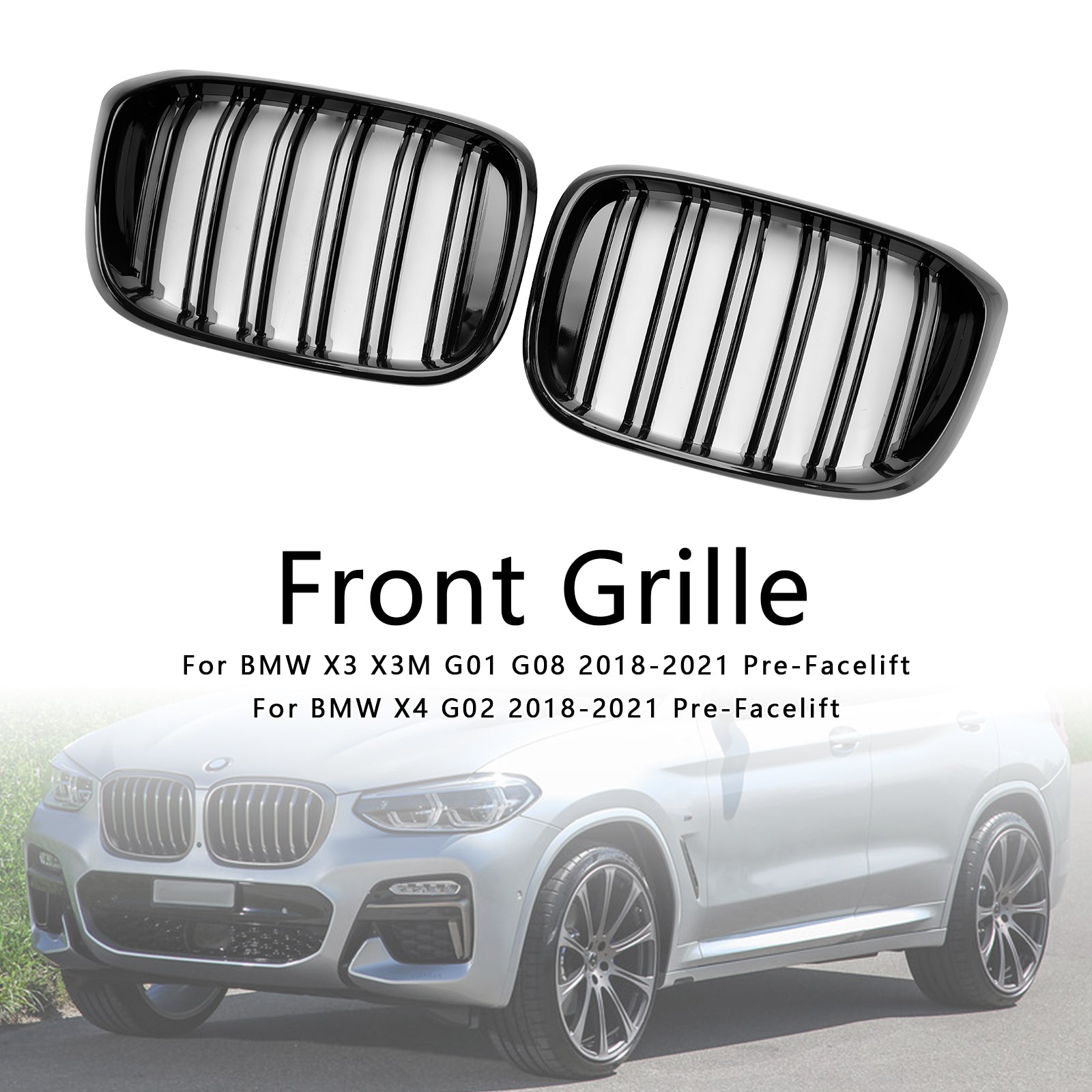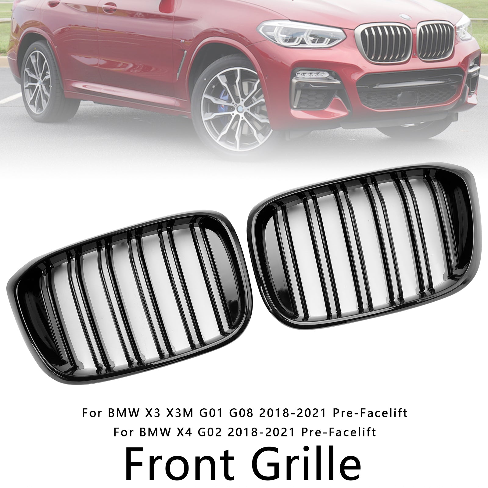 Front Kidney Grille Mesh Grill Fit BMW X4 G02 X3 G01 G08 2018-2021 Pre LCI