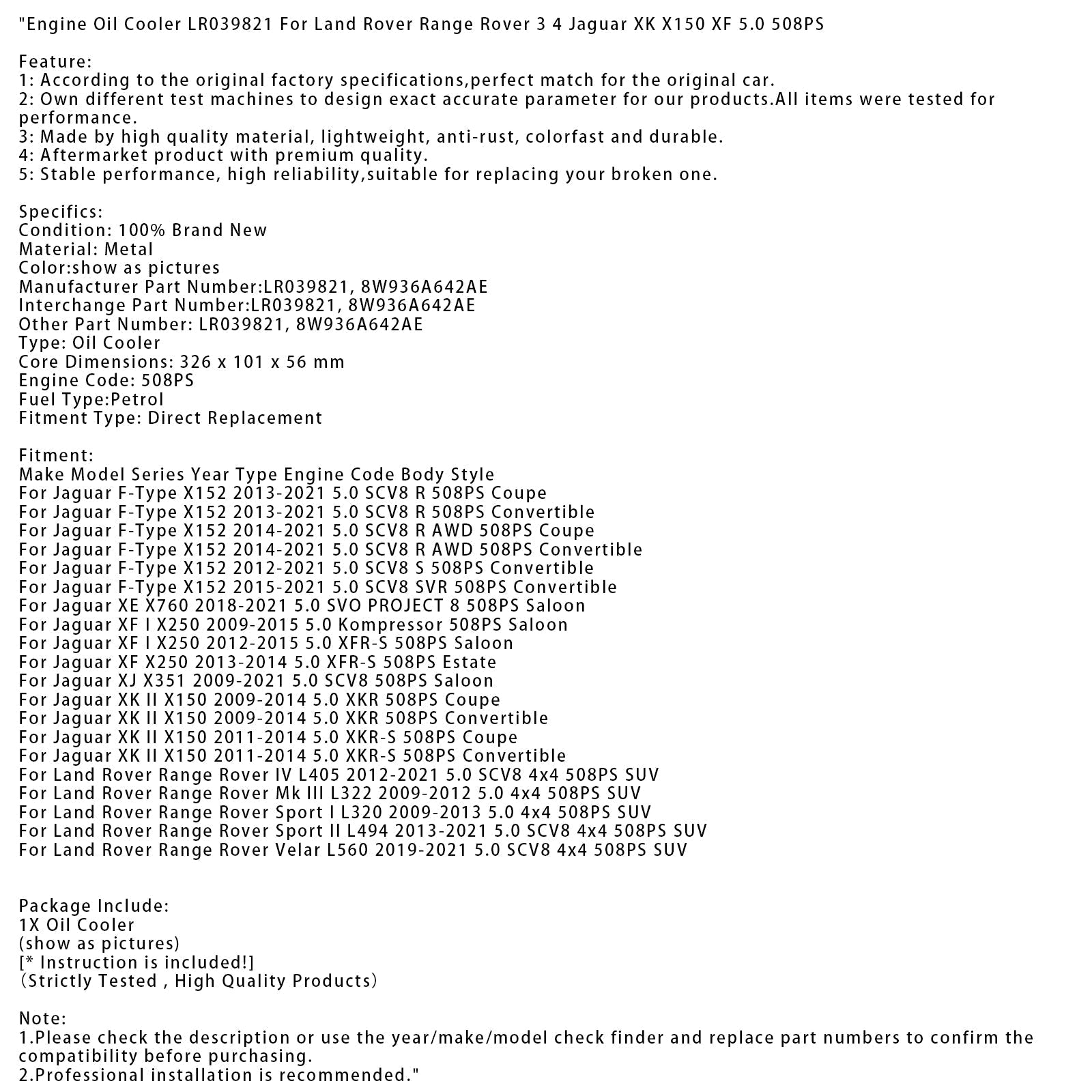 Engine Oil Cooler LR039821 For Land Rover Range Rover 3 4 Jaguar XK X150 XF 5.0 508PS