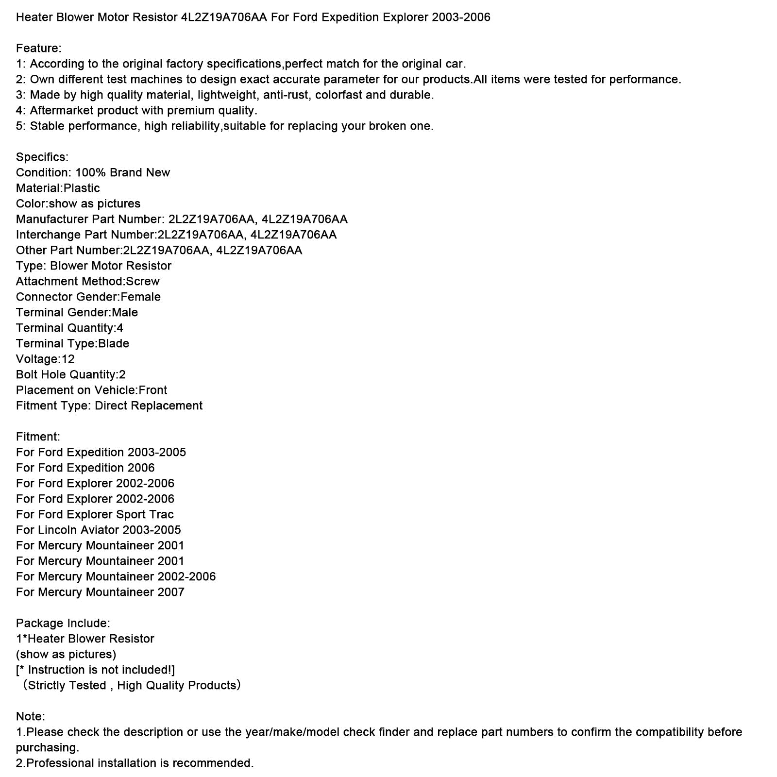 Heater Blower Motor Resistor 4L2Z19A706AA For Ford Expedition Explorer 2003-2006
