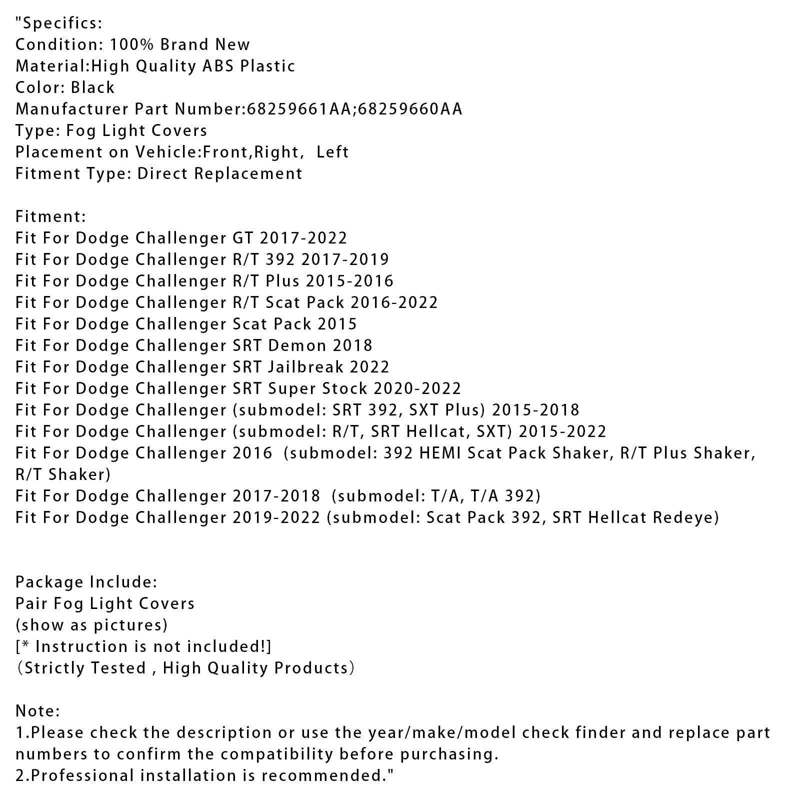 Pair Fog Light Covers For Dodge Challenger 2015-2022 68259660AA