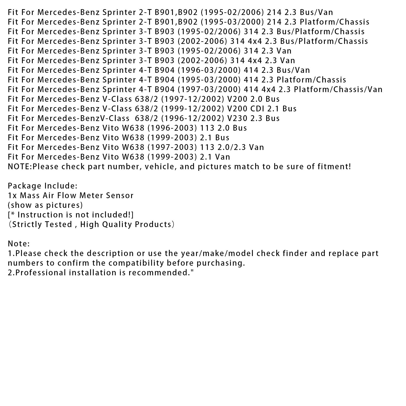 Mass Air Flow Meter Sensor For Mercedes-Benz W202 W210 Sprinter 2-T 0000941448