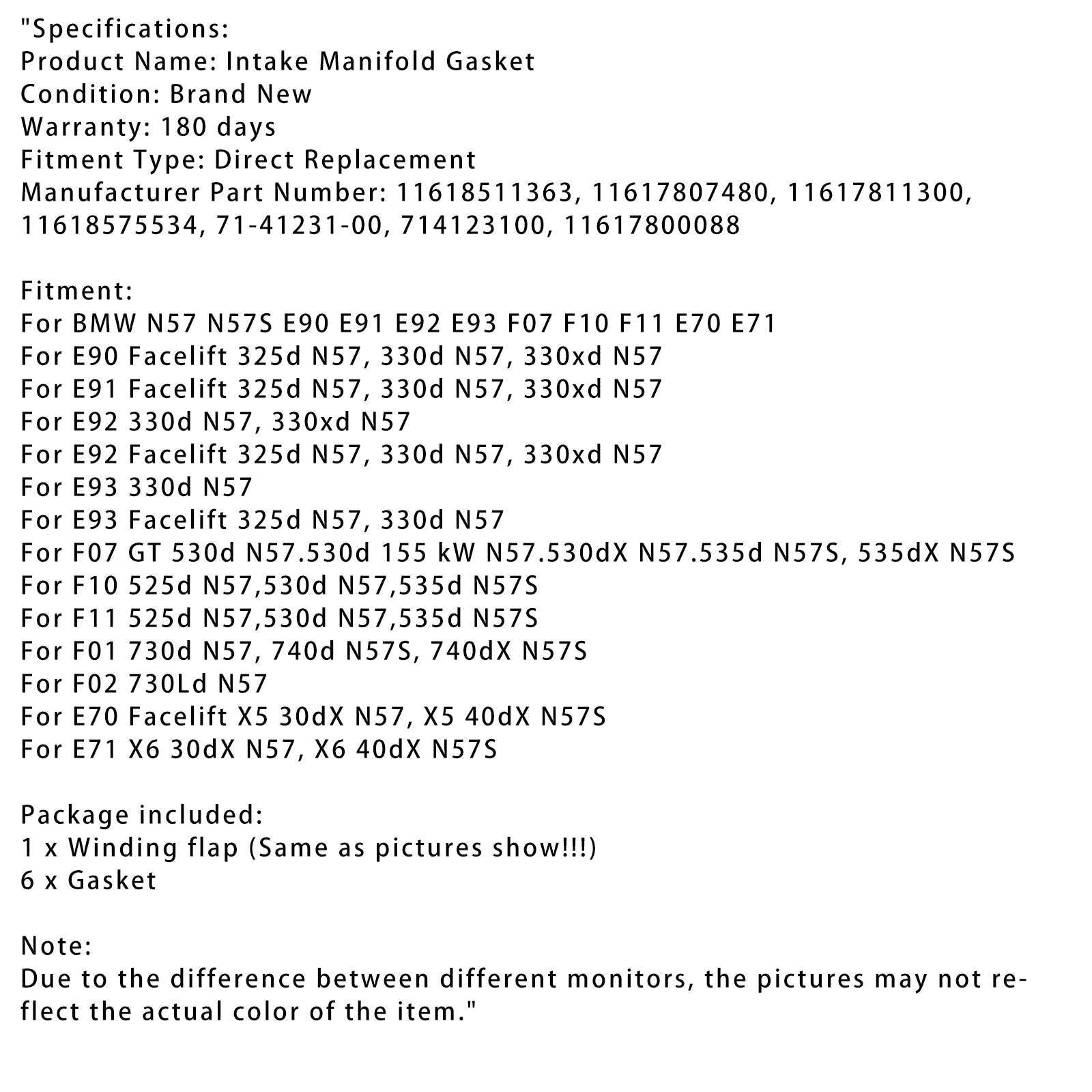 6PCS Intake Manifold Gasket 1167807480 Fit BMW E90-93 F10 F11 F07 X5 X6 N57