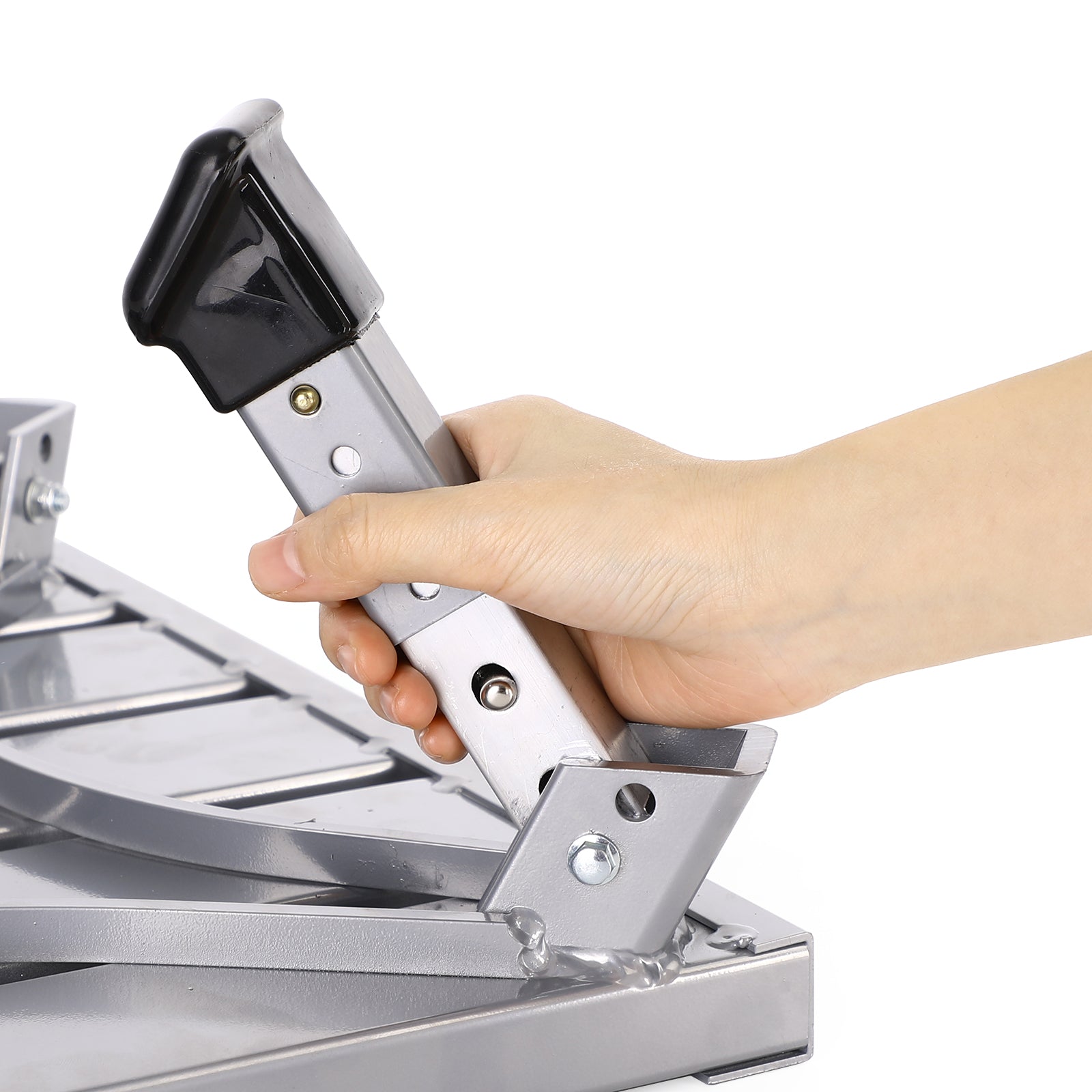?\Strong Stability/?This Aluminum Folding platform step stool features tubular aluminum, has 19" x 12" platform providing stability. The welds are continuous around the four legs and the legs with rubber feet can make the step stand stable on the ground.