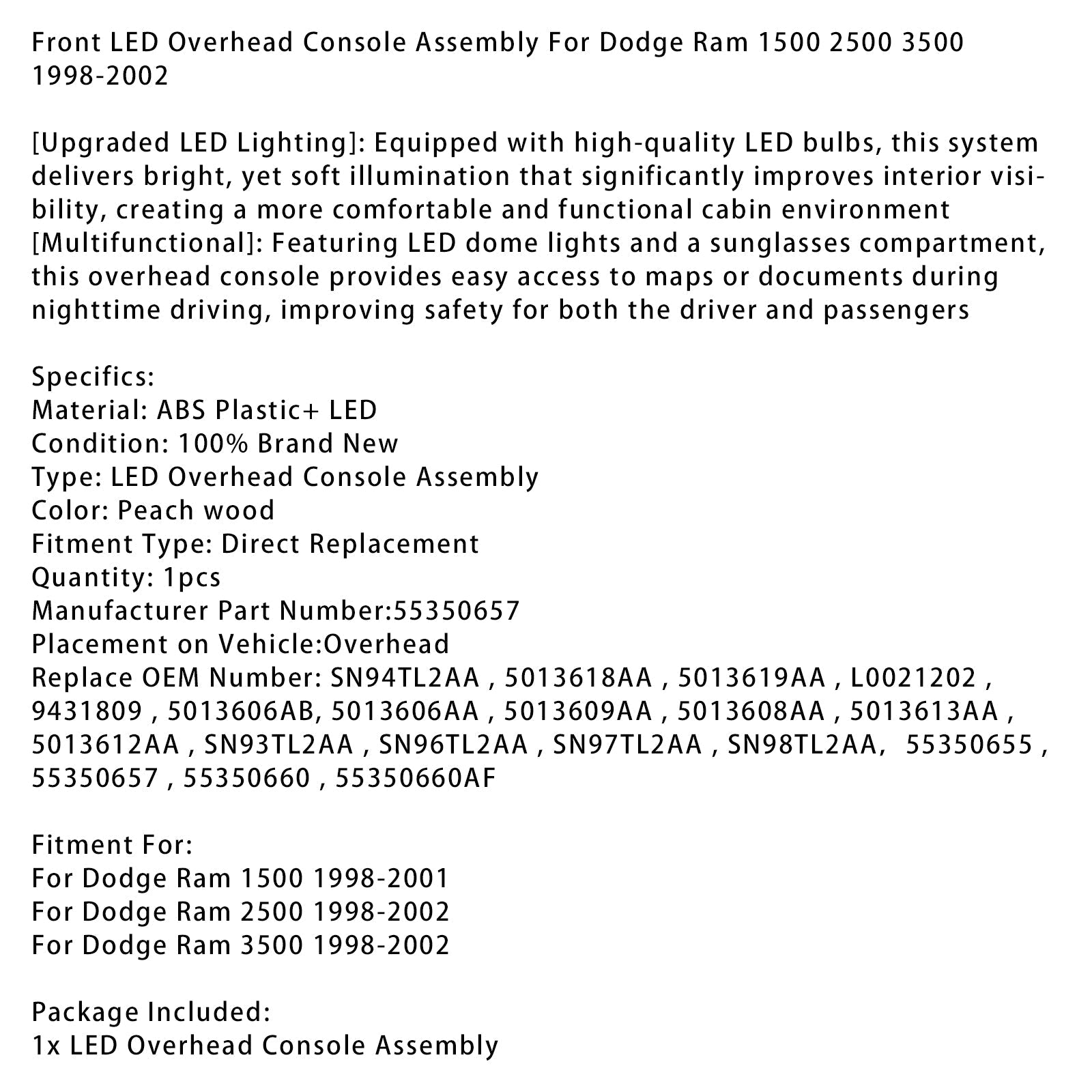 Front LED Overhead Console Assembly For Dodge Ram 1500 2500 3500 1998-2002