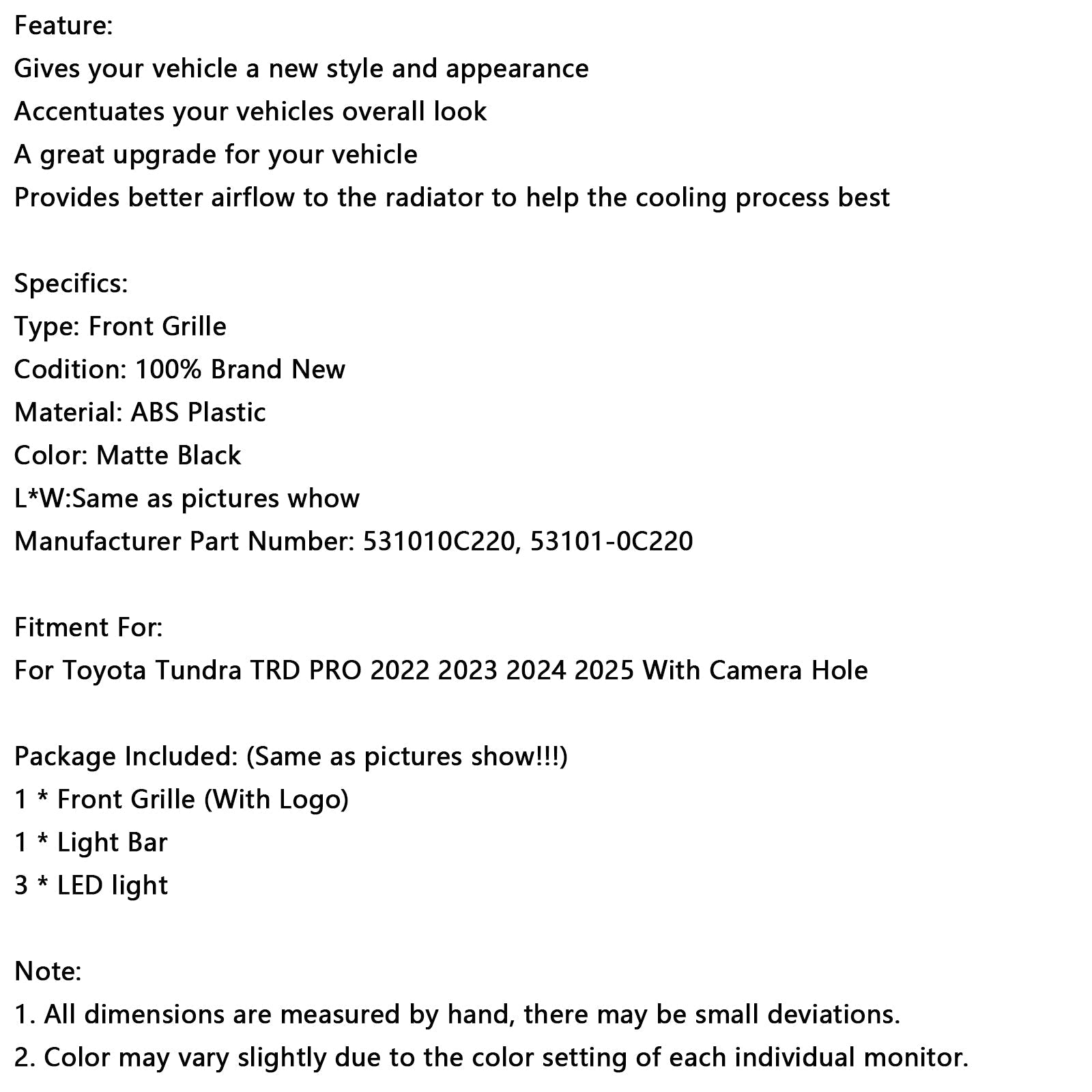 Matte Black Front Grill Grille 53101-0C220 Fit Toyota Tundra 2022-2025 TRD PRO
