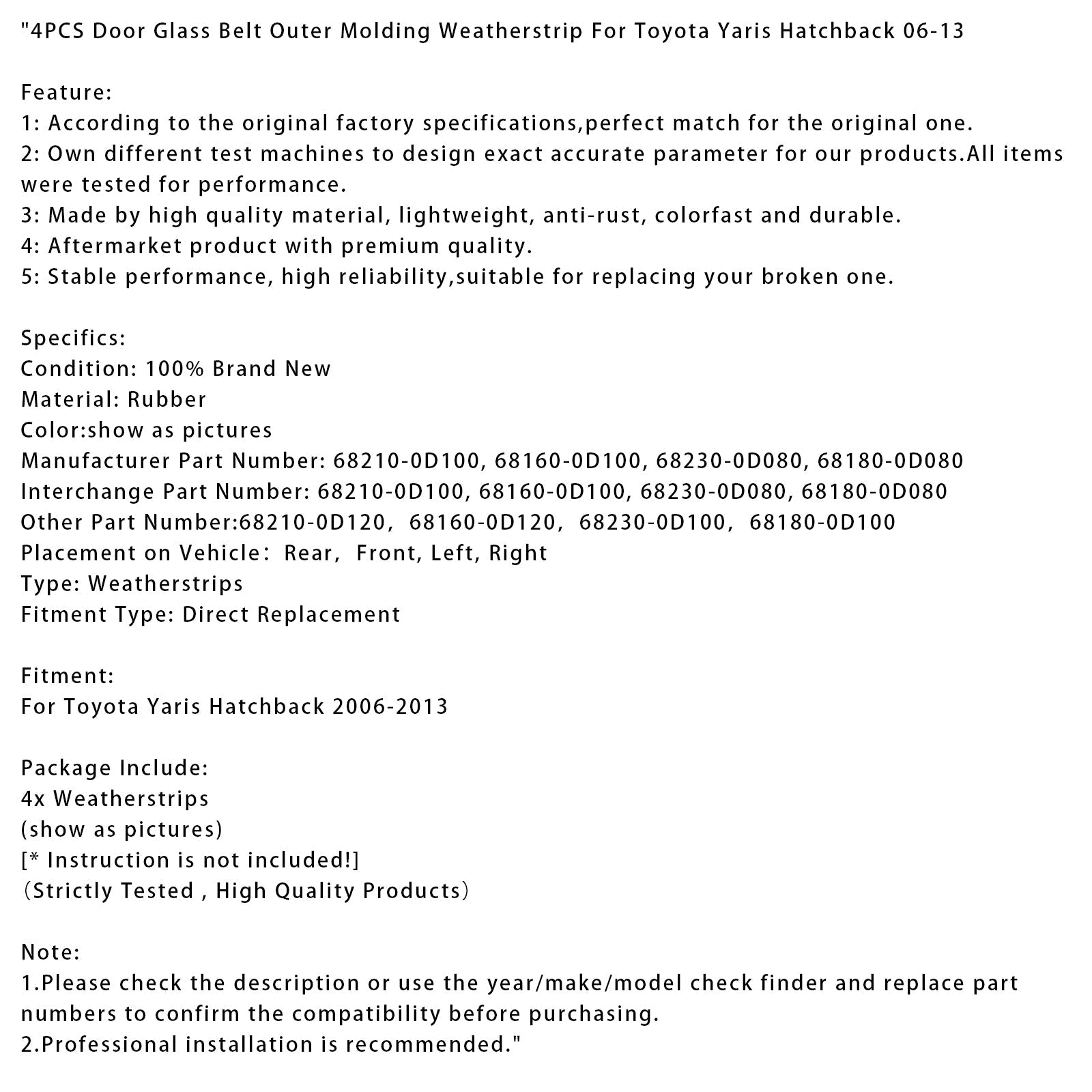 2006-2013 Toyota Yaris Hatchback 4PCS Door Glass Belt Outer Molding Weatherstrip