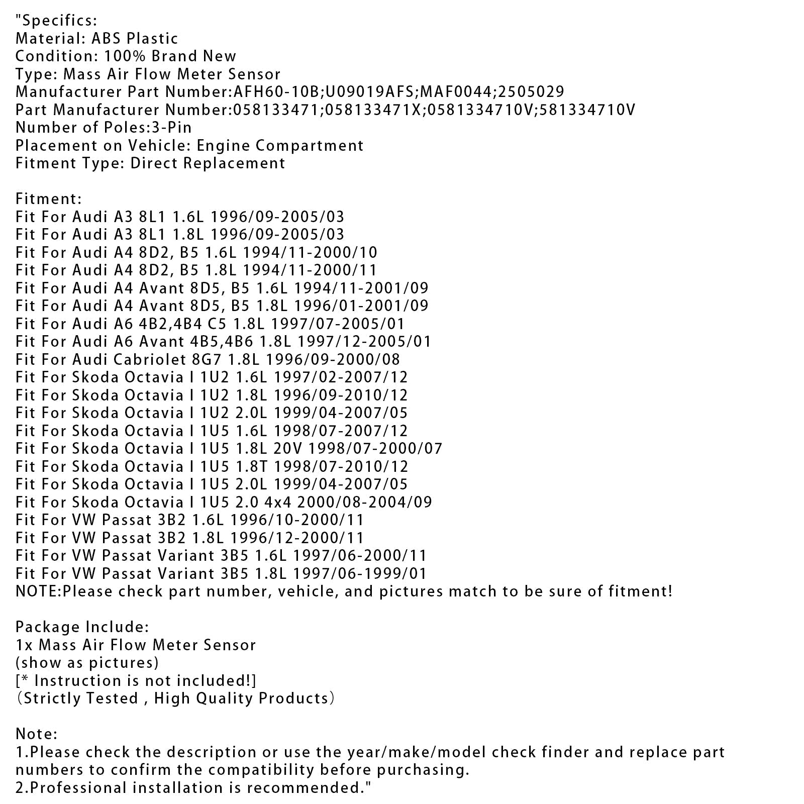 Mass Air Flow Meter Sensor For Audi A4 B5 A6 C5 VW Passat 3B 1.8L 058133471