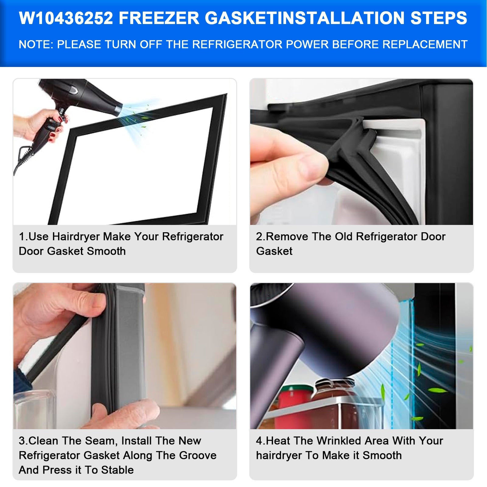 【Easy Installation】You may need to prepare a screwdriver, a hair dryer, a roll of tape. Then began to install: step1,Unscrew the panel, remove the old freezer door gasket; step2,Install the four corners first and then press the middle back and forth to make it docile; step3,After installation, use a hair dryer to heat up the sealing strip and blow it for a while to smooth the creases; step4,Fix the refrigerator door with tape until the next day.