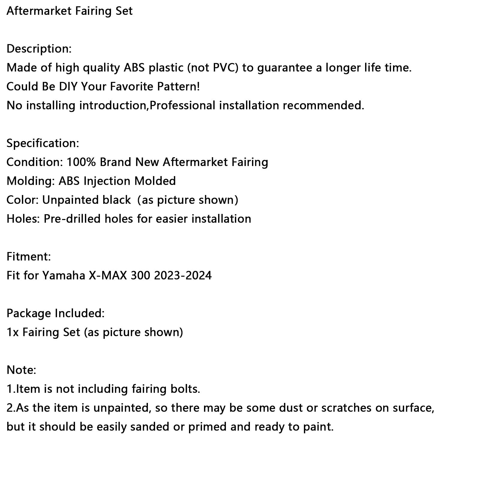 Bodywork Fairing Injection Unpainted For Yamaha X-MAX 300 XMAX 2023 2024