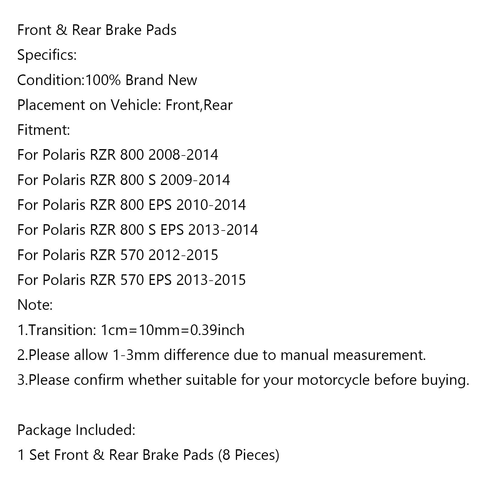 Pastillas de freno delanteras y traseras para Polaris Razor RZR 800/RZR 800 S/RZR 800 EPS/RZR 570 genérico